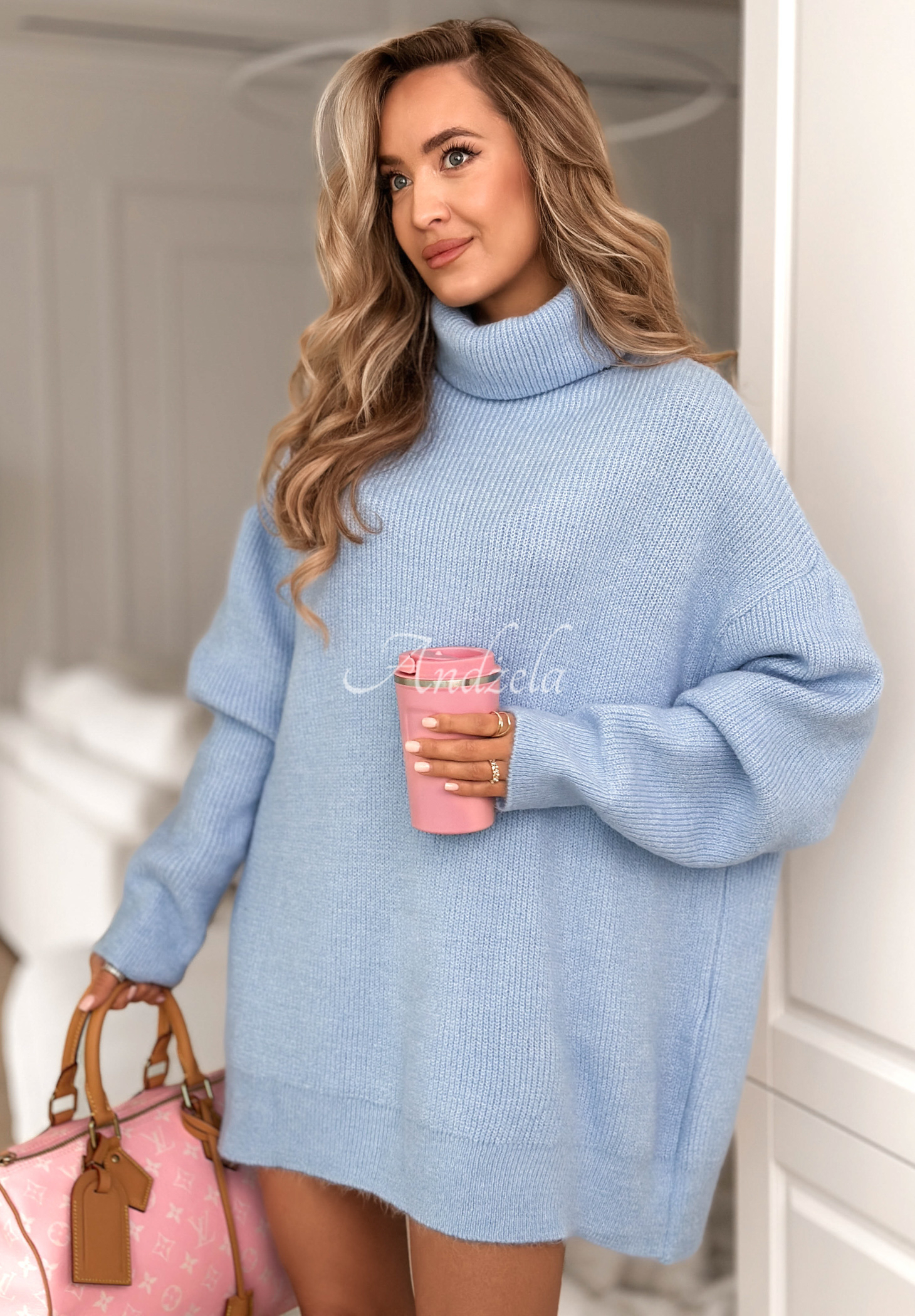 Oversized sweater with an elongated cut, is a perfect base for everyday styling. The cut has a turtleneck, the sleeves and hem are finished with welts. This model will look great when paired with boots, as well as sports shoes. The product is available in several color variants.