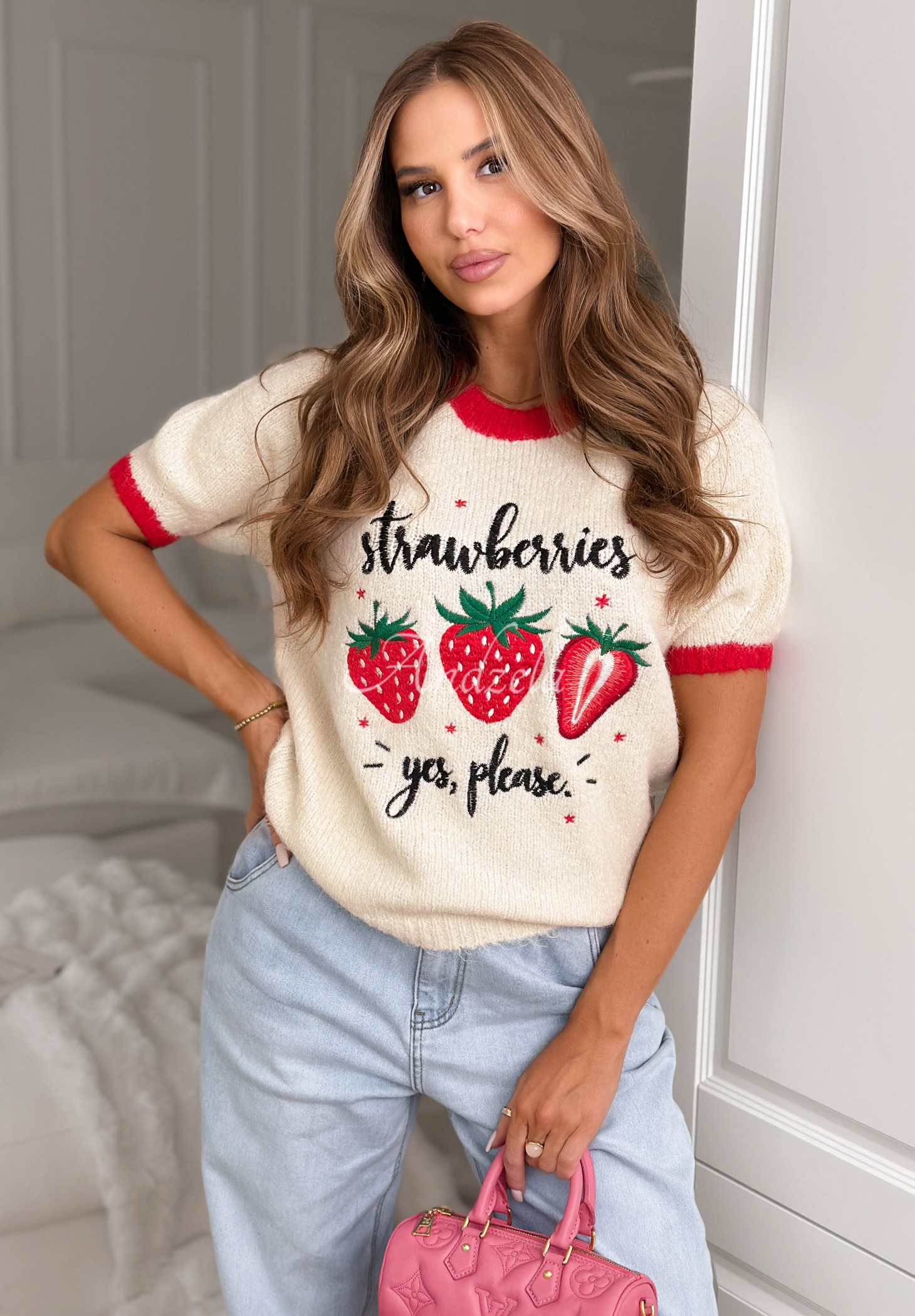 A soft sweater made of pleasant viscose-blend fabric. It is distinguished by embroidery on the front and a rounded neckline. The model has a ribbed hem at the bottom and at the sleeves.