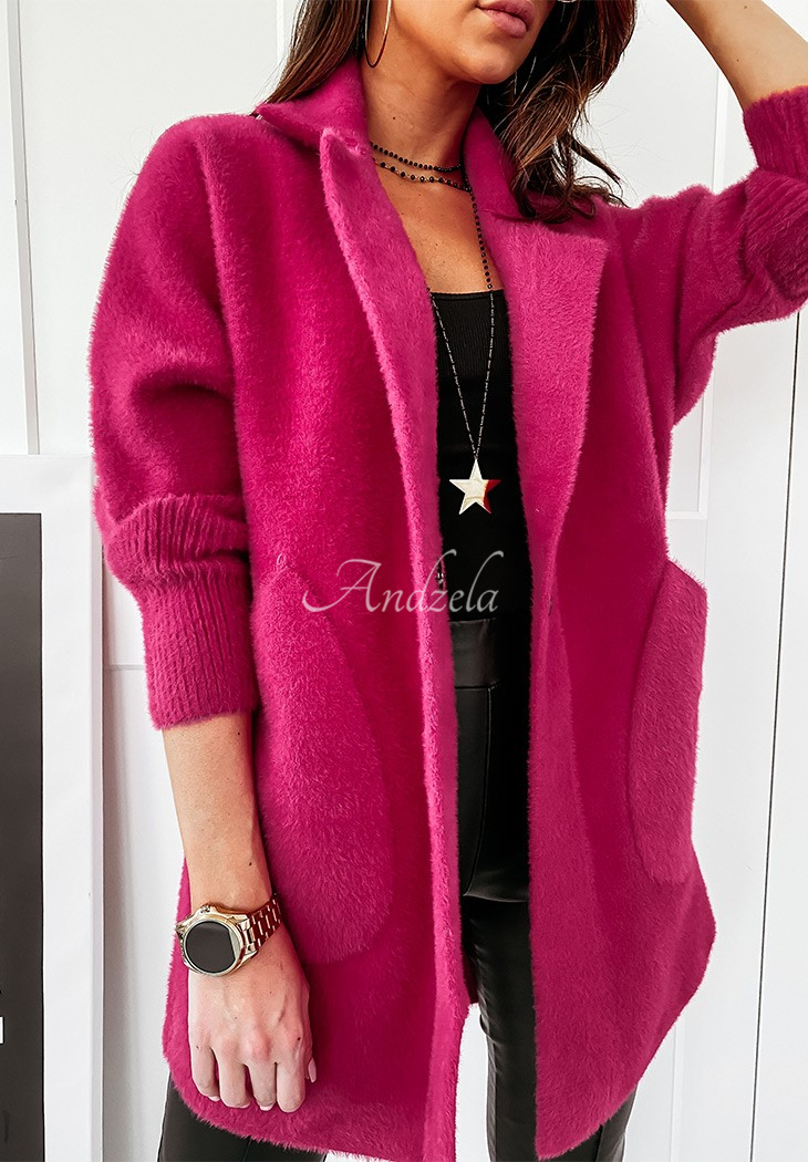 The coat is made of very fashionable and extremely pleasant material. Warm, ideal for spring/autumn. Oversize, loose cut to fit elegant, casual as well as sporty styling. Fastened with a concealed fastener, sleeves finished with wide welts. It has a collar and two deep pockets on the sides. Available in several colors.