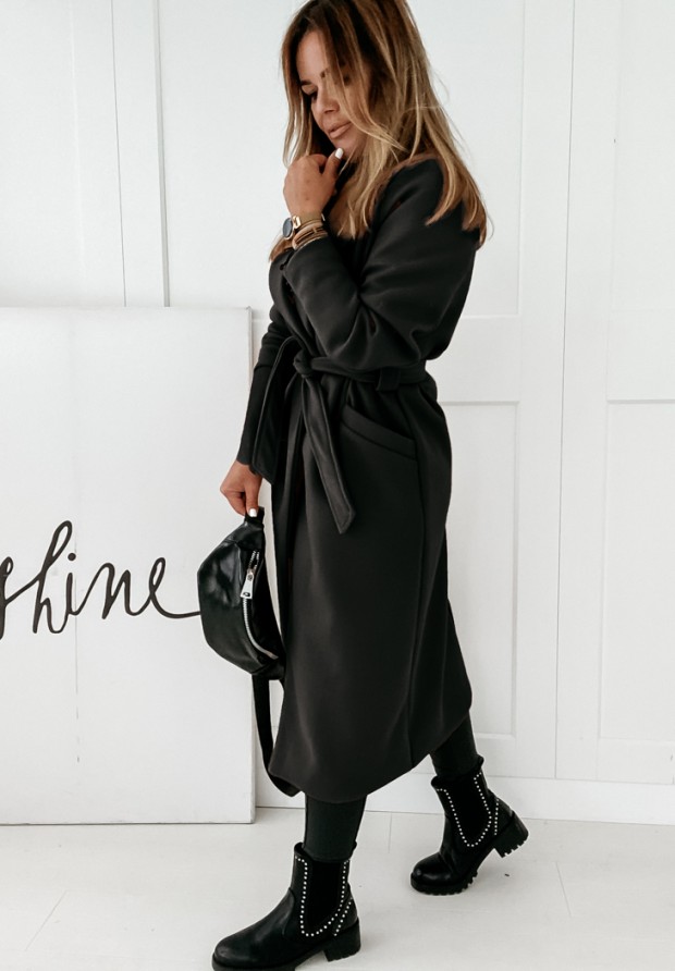 Classic, simple coat is a proposition that definitely cannot be missing in your wardrobe. The item has practical pockets, and thanks to the attached strap, you can tie it around the waist and shape it. Oversize cut in combination with a minimalist design creates a model that will always look good and fashionable, especially in the autumn season, in both casual and elegant stylizations. Available in a few colour versions.
