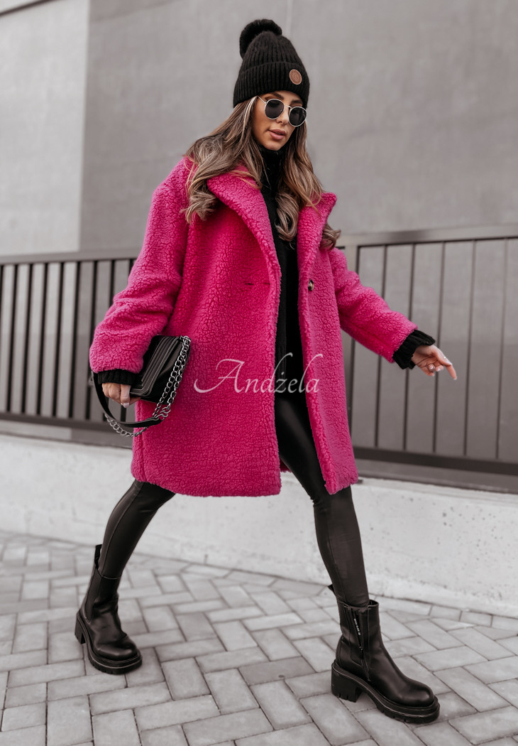 A soft coat made of imitation sheepskin is an extremely fashionable proposal for this season. The model has an oversized cut, is buttoned, has pockets and a collar. It will phenomenally complement cooler day loos and will present itself really stylish. The product is available in several color variants.