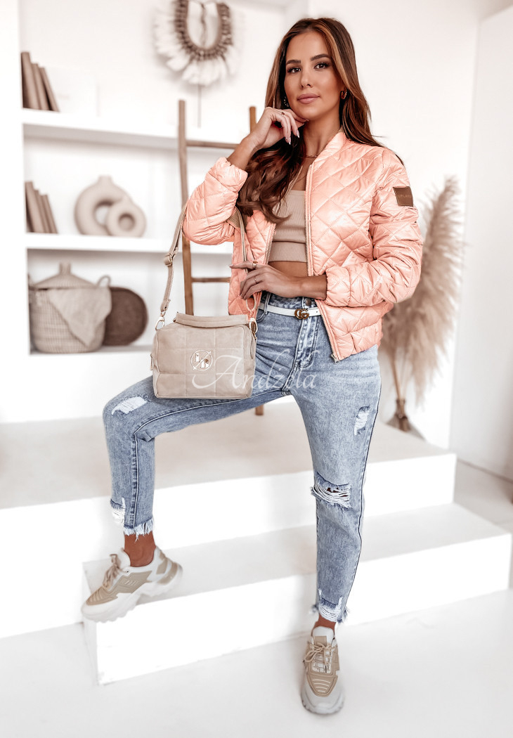 The quilted bomber jacket with a zipper closure is a proposal that will definitely be fantastic for cooler days in the spring and autumn season. The model has two pockets and welts at the sleeves and at the bottom of the jacket. An additional distinguishing feature of this product is a small patch with the company logo, located on one of the sleeves. This model will undoubtedly present itself fashionably and modern when paired with jeans, as well as sweatpants. Available in several color versions.