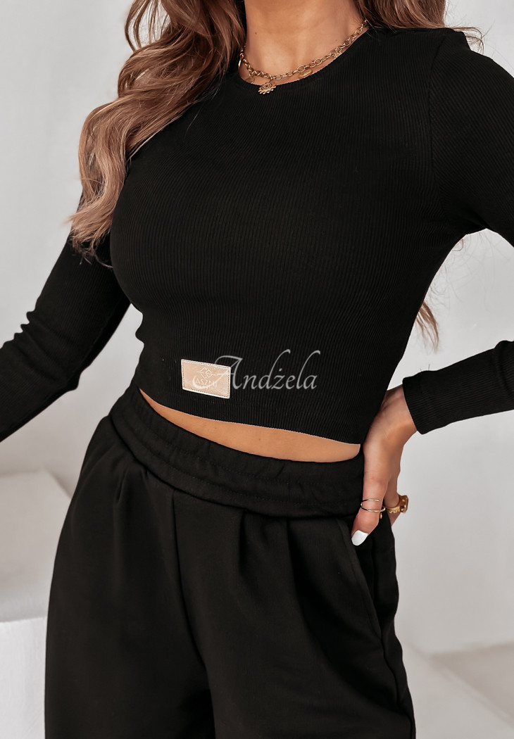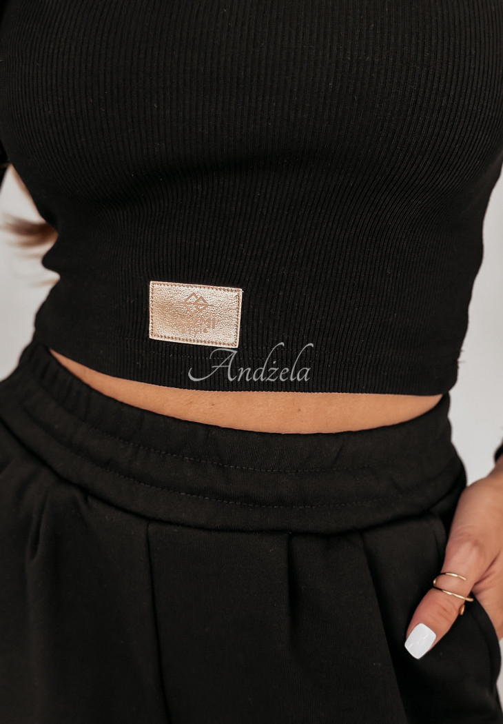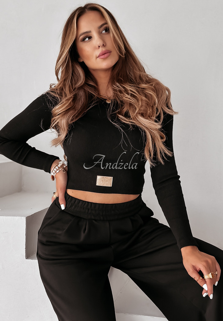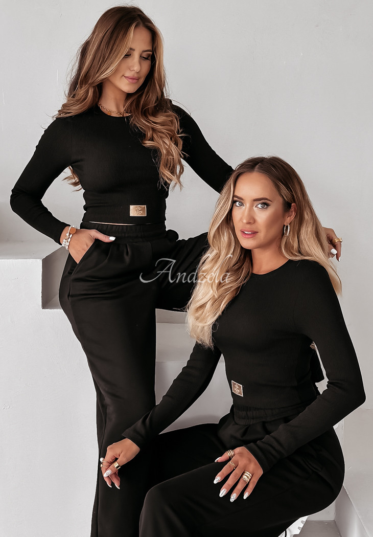 A unique set made of high-quality fabric is a perfect base for many everyday looks. A short, ribbed blouse with a rounded neckline and a patch at the bottom. Pants with elastic waistband and side pockets stand out with wide legs. Available in several color versions.