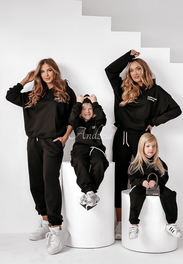 Dreamland is a sweatshirt set created with moms and kids in mind, made of the highest quality cotton, perfect for everyday wear! The hoodie with a hood and kangaroo pocket has ribbed cuffs and bottom. The model is distinguished by a decorative print on the front, as well as on the back. The pants with an elastic band and a drawstring for adjustment at the waist have pockets and welts in the legs. This is the perfect choice for a family matching set! Design by ANDŻELA!