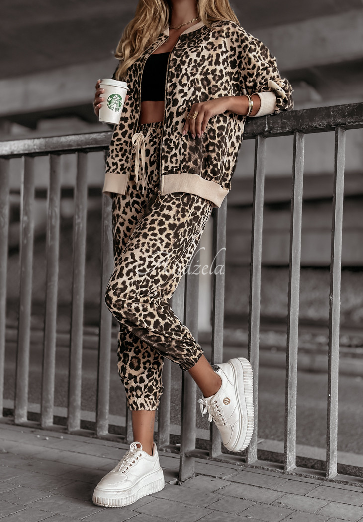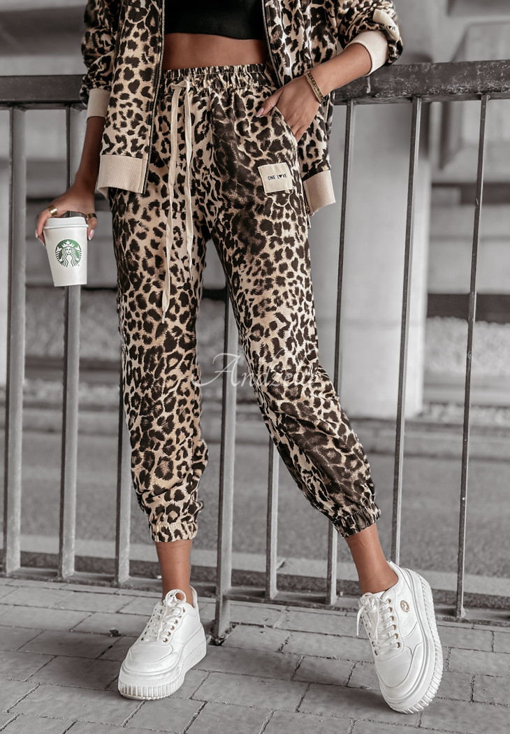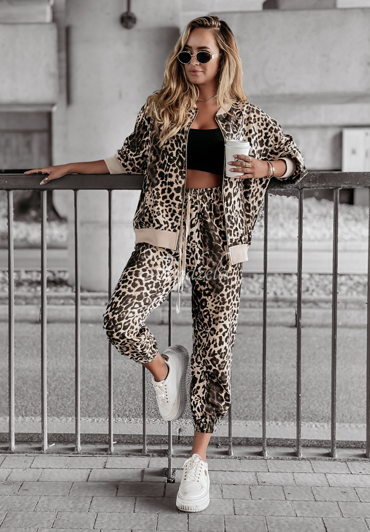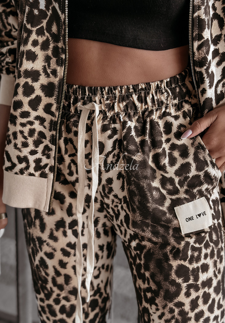 The tracksuit set made of high-quality cotton fabric is a perfect everyday option for looks in comfort. It is distinguished by a fashionable pattern, giving the whole piece character. The sweatshirt with a classic cut is fastened with a gold zipper and has functional pockets. Pants with drawstrings at the legs and elastic waistband perfectly fit the figure.