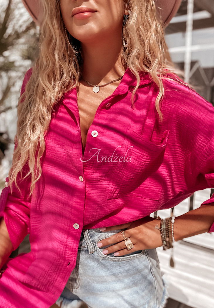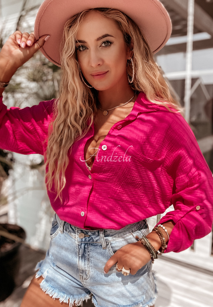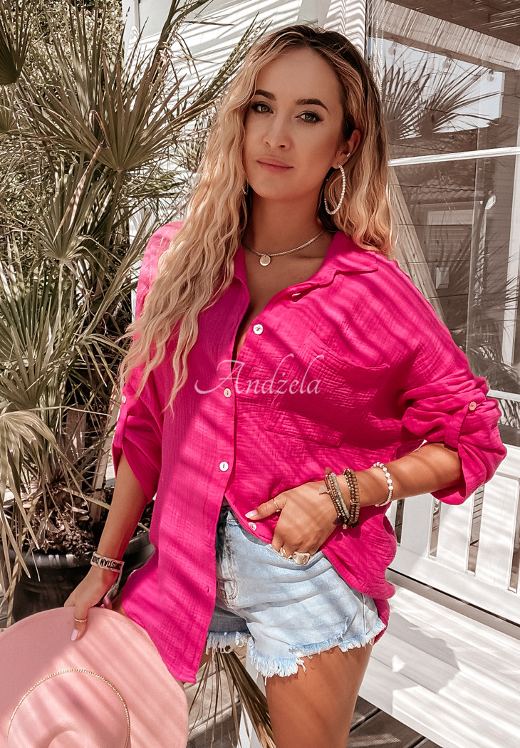 A muslin shirt with an elongated, slightly asymmetrical cut, is a great base for many everyday outfits. The model is buttoned and has adjustable sleeves. On the front, on the left side there is a pocket. The product is made of high-quality material and is available in several color variants.