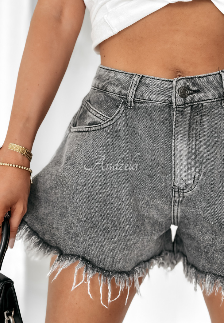 Cotton shorts are a proposition that should be in every closet in the spring-summer season. They are distinguished by wide legs with a raw finish, which gives the whole look character. This high-waisted model is fastened with a silver zipper and button. There are functional pockets on both the front and back.