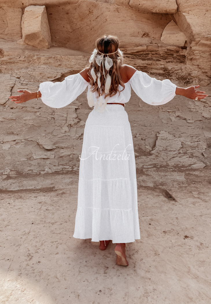 The skirt, made of high-quality muslin fabric, is a great base for summer styling. The model is distinguished by a slit on the side, which will make any styling look light and feminine at the same time. The whole dress adapts to the figure thanks to the elastic band located at the waist. Compose it with one of the blouses from the same collection and you will create the perfect set for the vacations. High quality product, available in several color variants. Design by ANDŻELA!