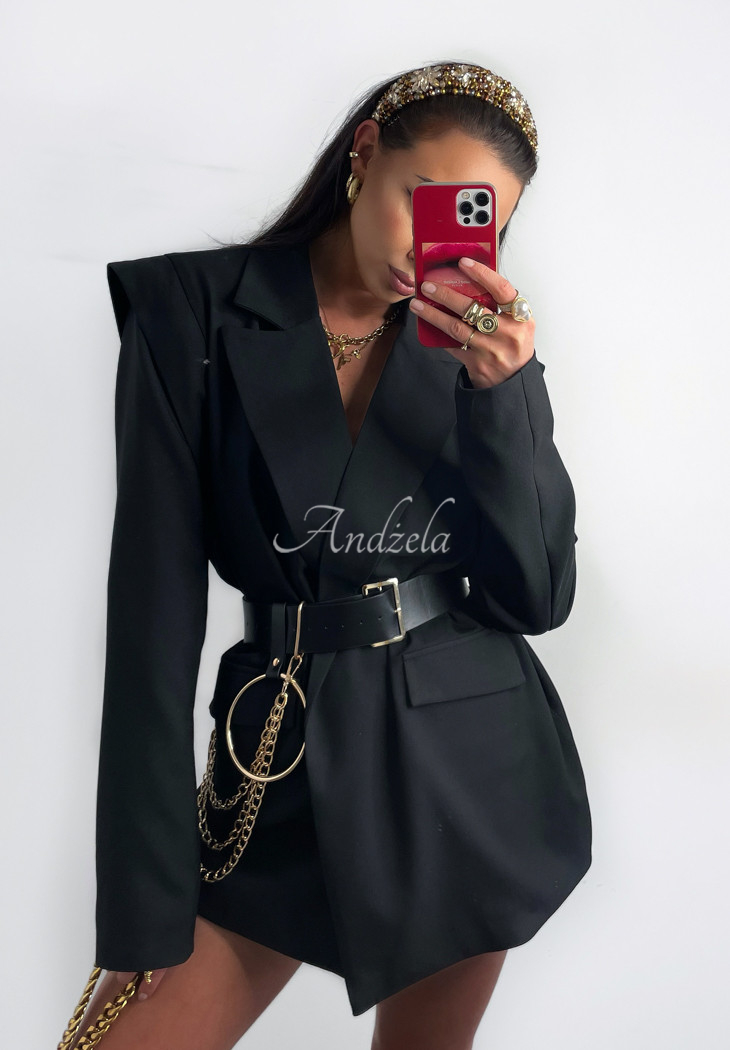 Oversized blazer made of smooth fabric is a great choice to complement many looks. The button-down model features front flap pockets. Additional elements that make this model stand out are the shoulder pads, and the stand-off fabric. The jacket is available in two color versions.