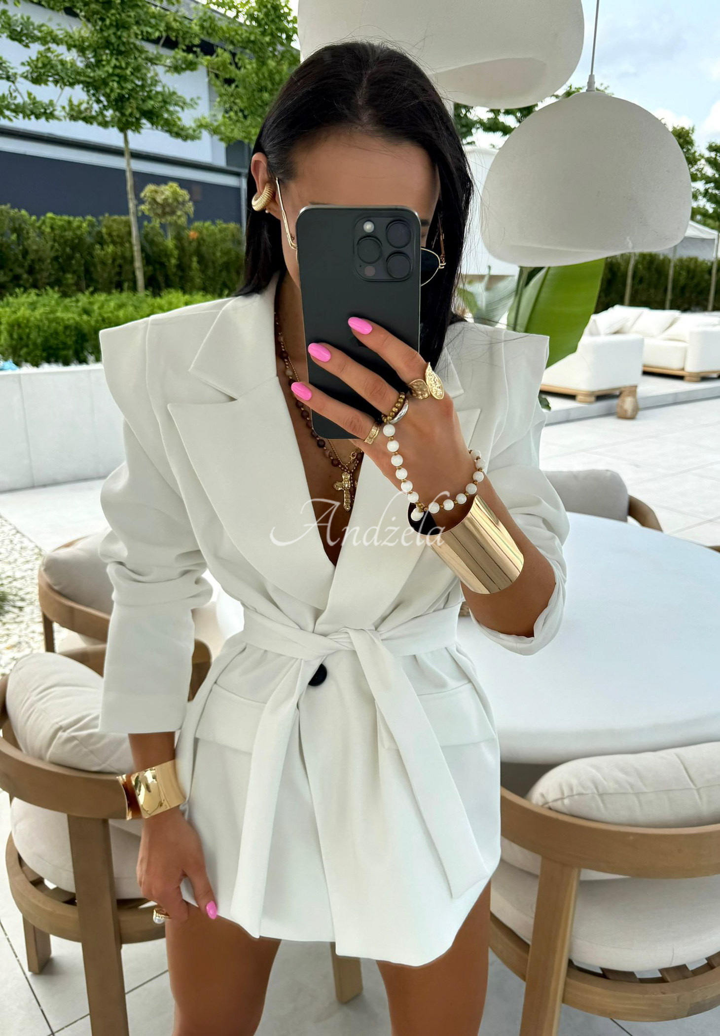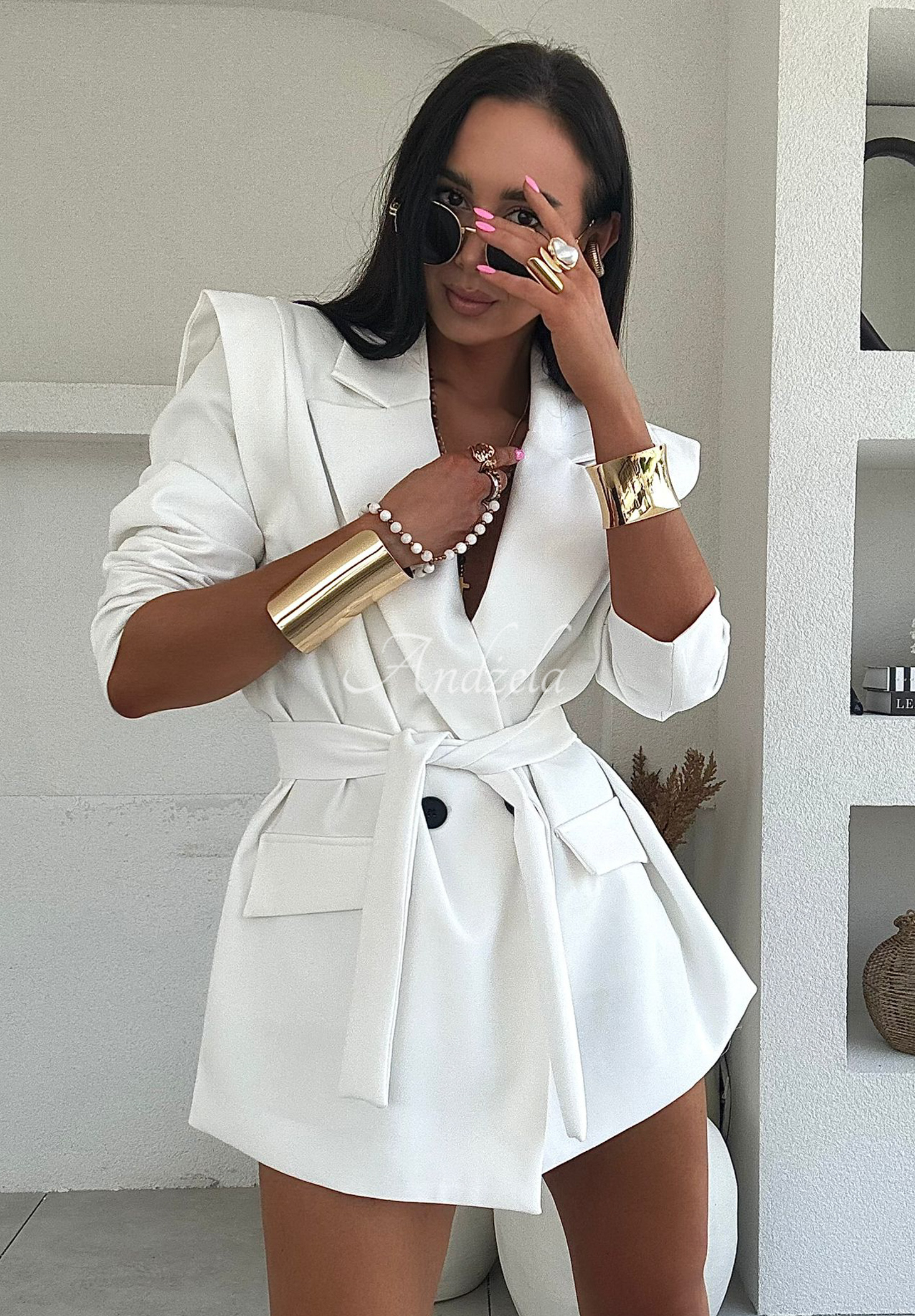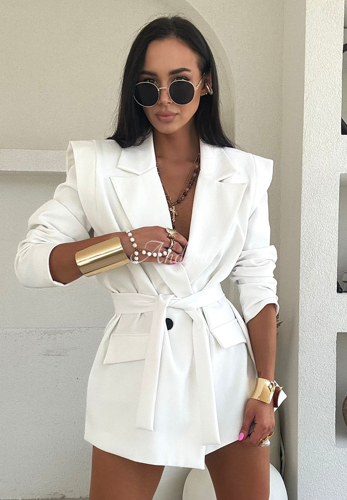 Oversized blazer made of smooth fabric is a great choice to complement many looks. The button-down model features front flap pockets. Additional elements that make this model stand out are the shoulder pads, and the stand-off fabric. The jacket is available in two color versions.