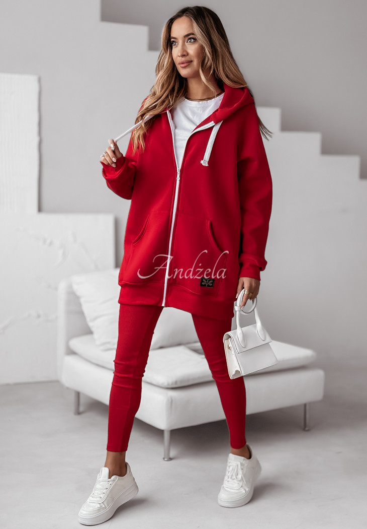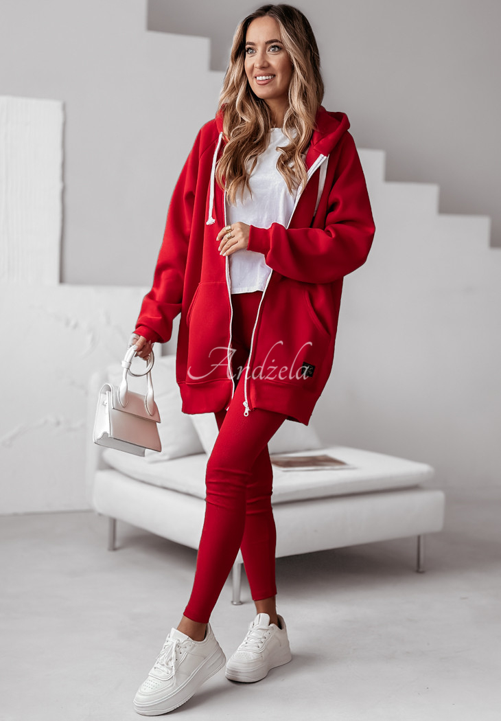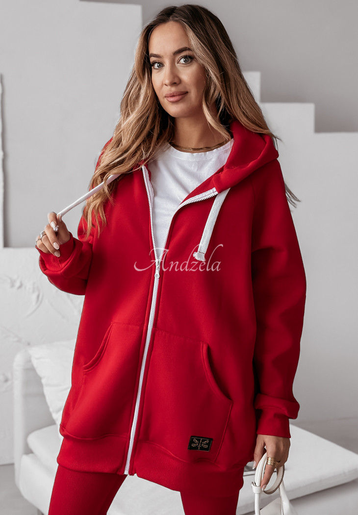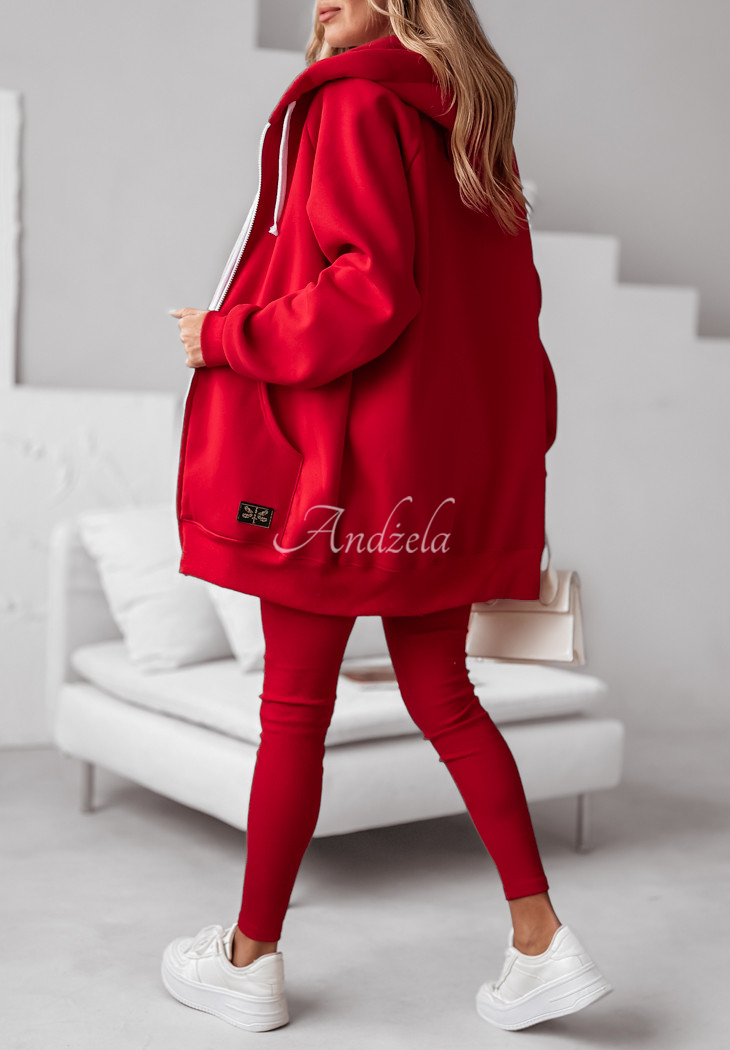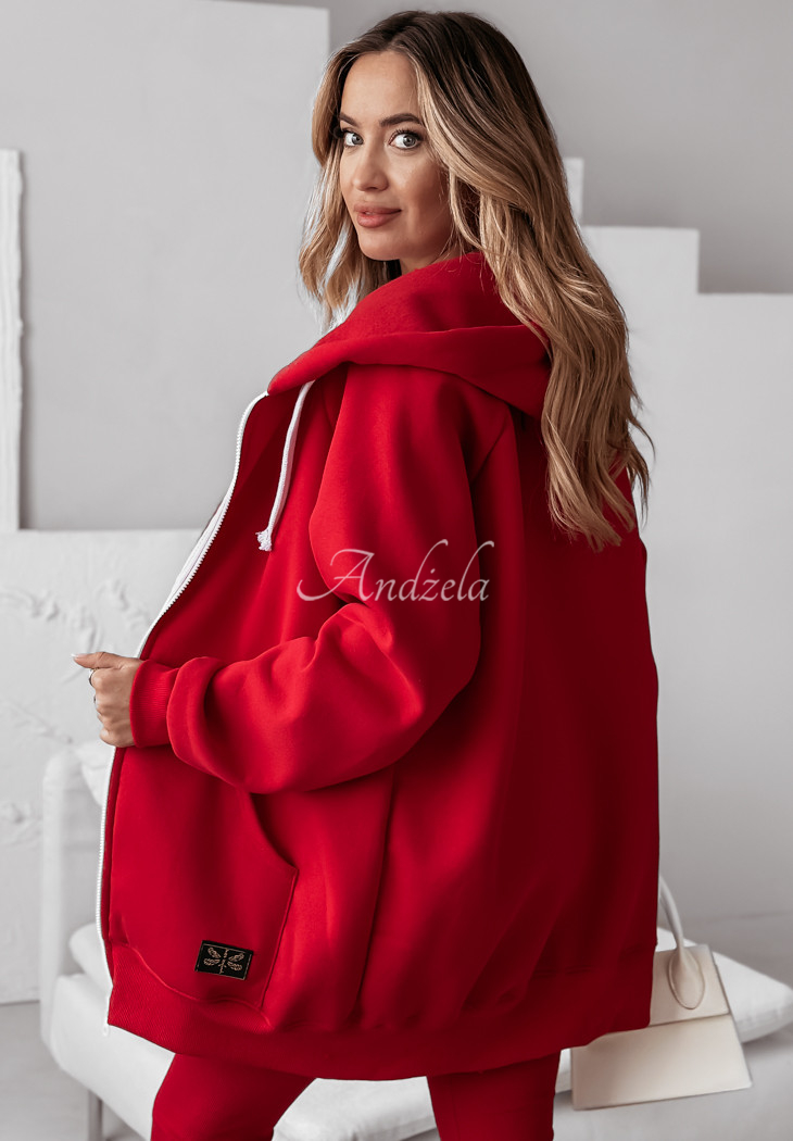 This oversized cut sweatshirt should be in every closet! It is zippered and has pockets on the front, with a small patch on one of them. The sleeves and hem are finished with welts. The whole is an ideal choice for those looking for comfortable, yet fashionable solutions. The product is available in several color variants.