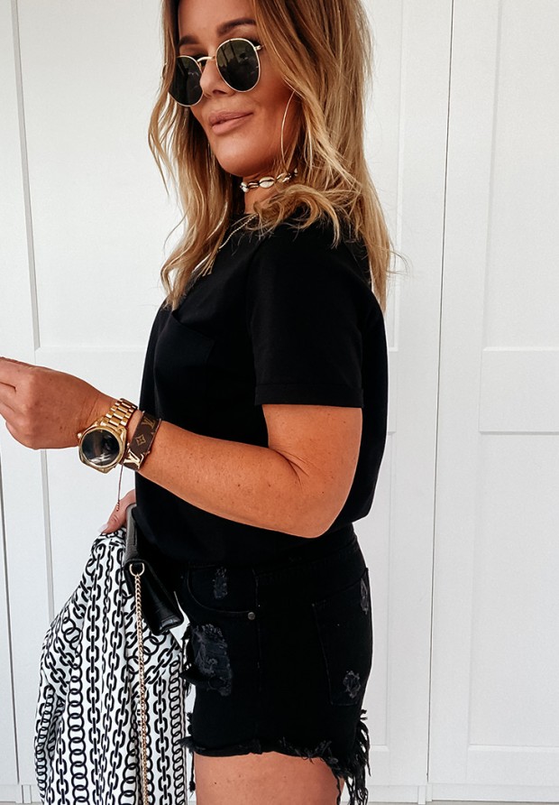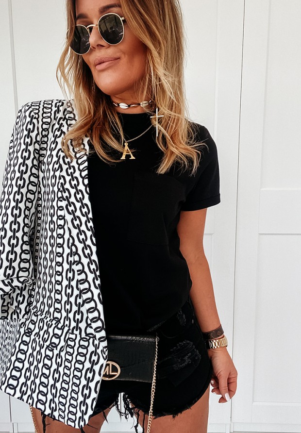 A classic T-shirt, made of high-quality material, is a perfect base for many everyday outfits. The model with a rounded neckline is distinguished by a small pocket on the bust. Available in two color versions. Product by ANDŻELA!