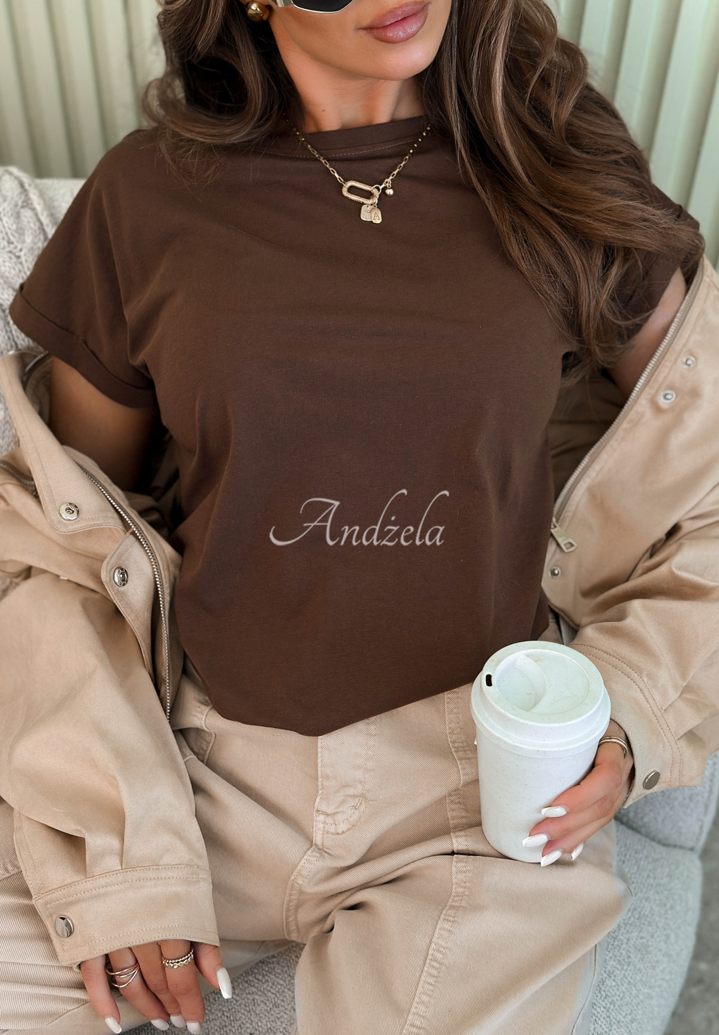 A smooth T-shirt made of high-quality cotton fabric. This model has short sleeves and a boat neckline. * stretchy fabric* boat neckline* short sleeves, permanently rolled up
