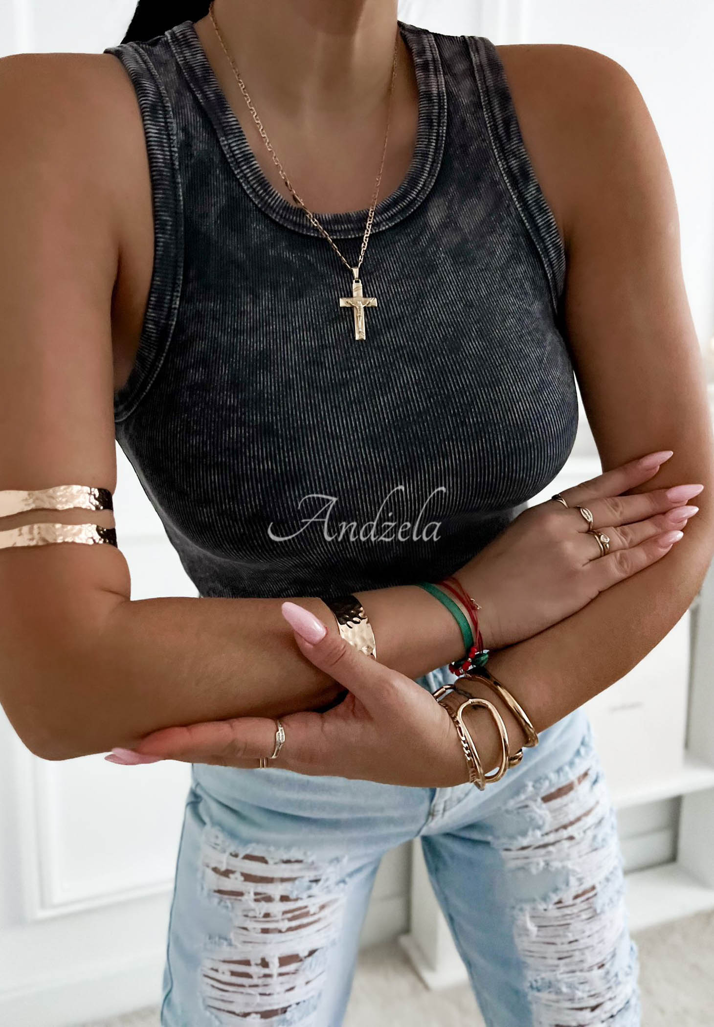 Callie dark gray ribbed cotton tank top