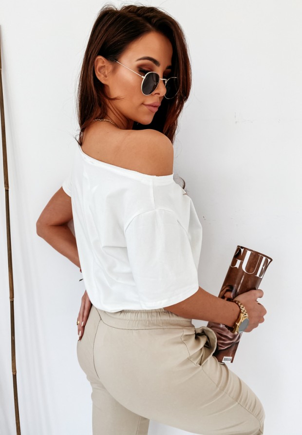 Material pants are a great base for everyday styling and more. Model with a drawstring and adjustable hem, will perfectly emphasize your figure. The cut has pockets on the front. They are available in many color versions.
