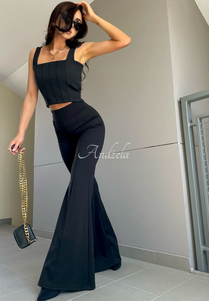 Minimalist bell-bottoms are a proposition that will present themselves extremely fashionable in both everyday and elegant styling. They are distinguished by flared legs with raised seams. This model is made of elastic material, has an elastic waistband, so it fits perfectly to the figure, emphasizing its assets.