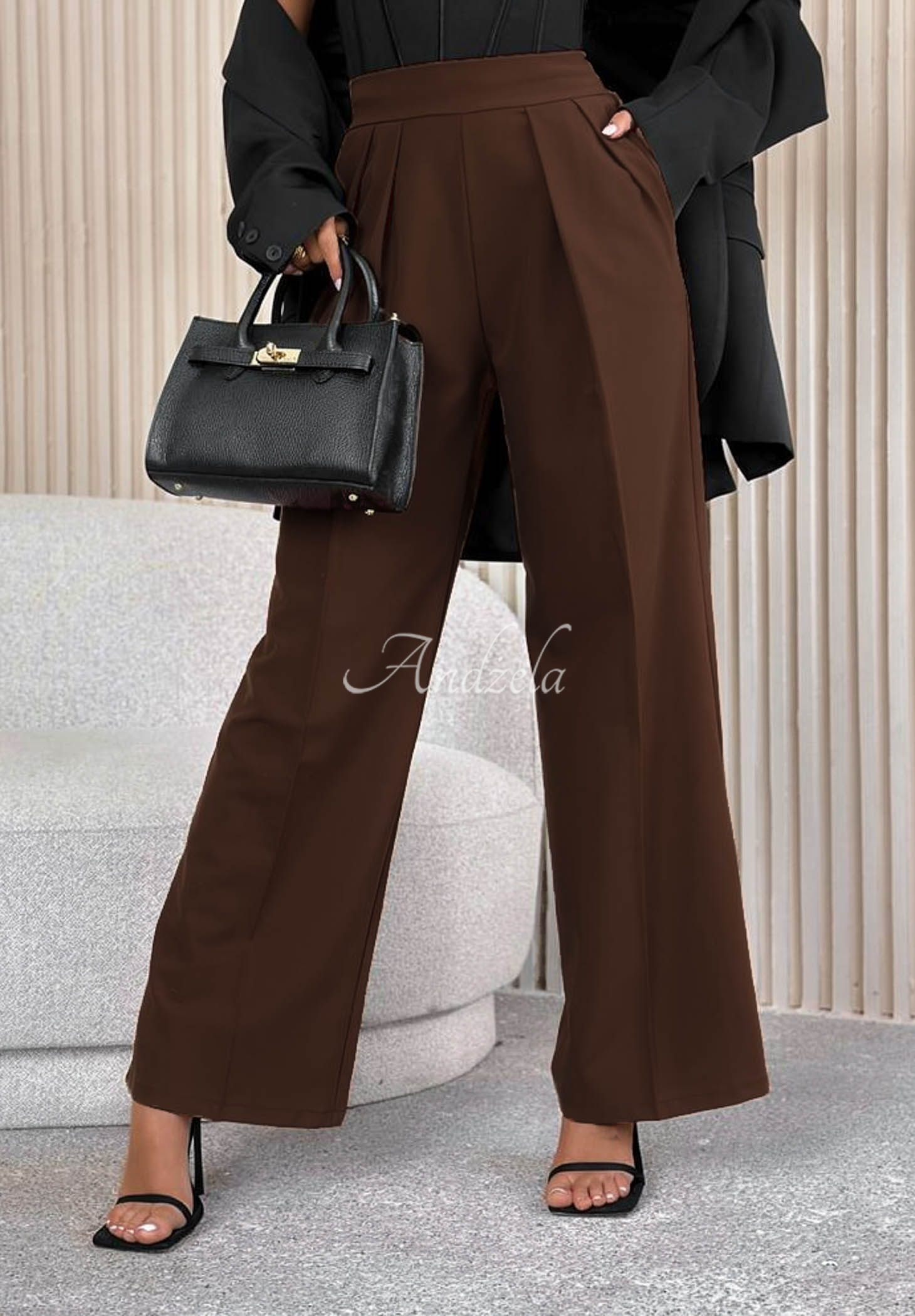 Reduced price! Elegant wide leg pants with viscose After You Left chocolate Elegant wide leg pants with viscose After You Left chocolate Elegant wide leg pants with viscose After You Left chocolate