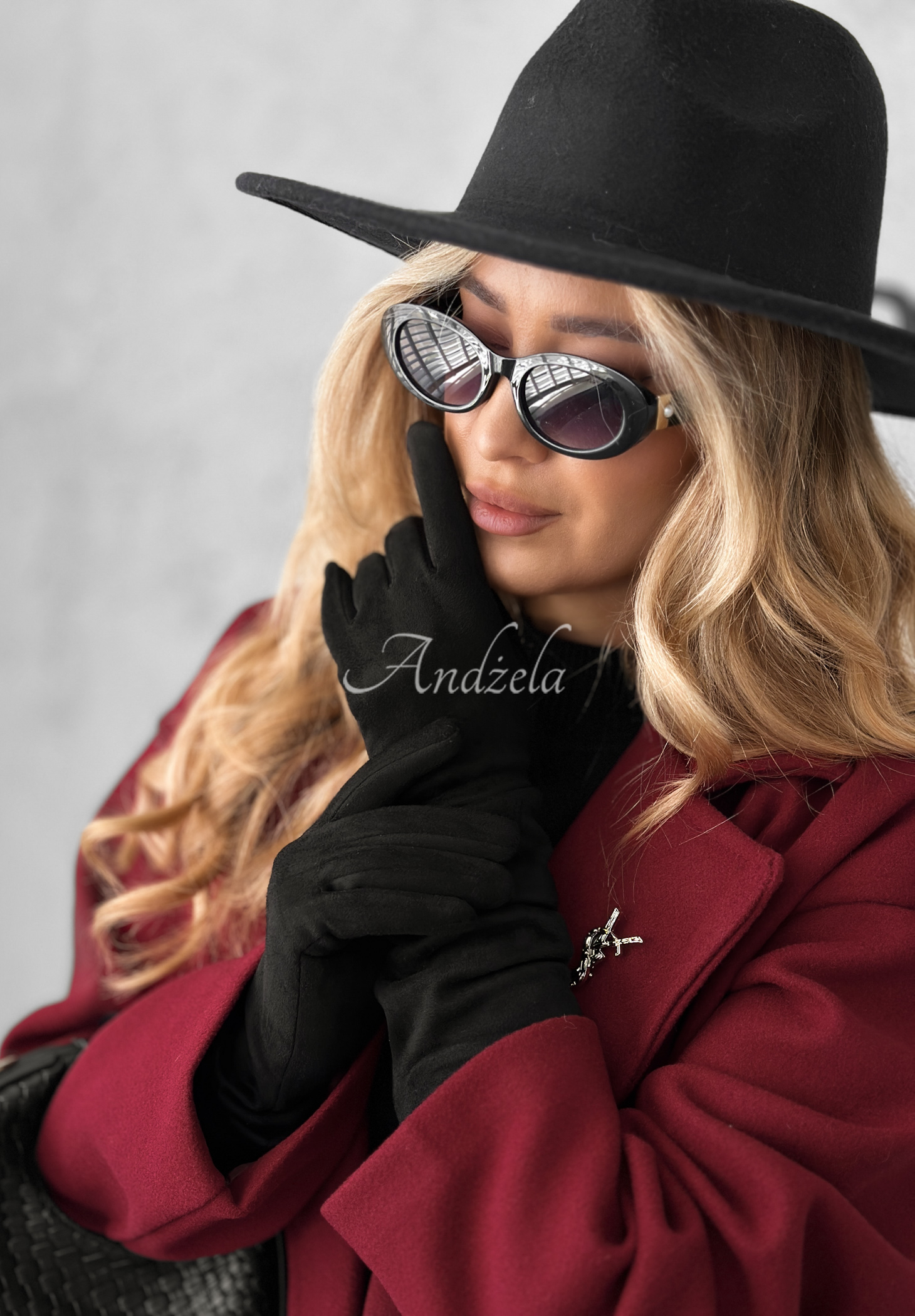 Lange Handschuhe aus Wildlederimitat. Das Produkt ist innen leicht gepolstert. Zeigefinger und Daumen sind zusätzlich mit speziellen Applikationen ausgestattet, die eine bequeme Nutzung des Smartphones ermöglichen.