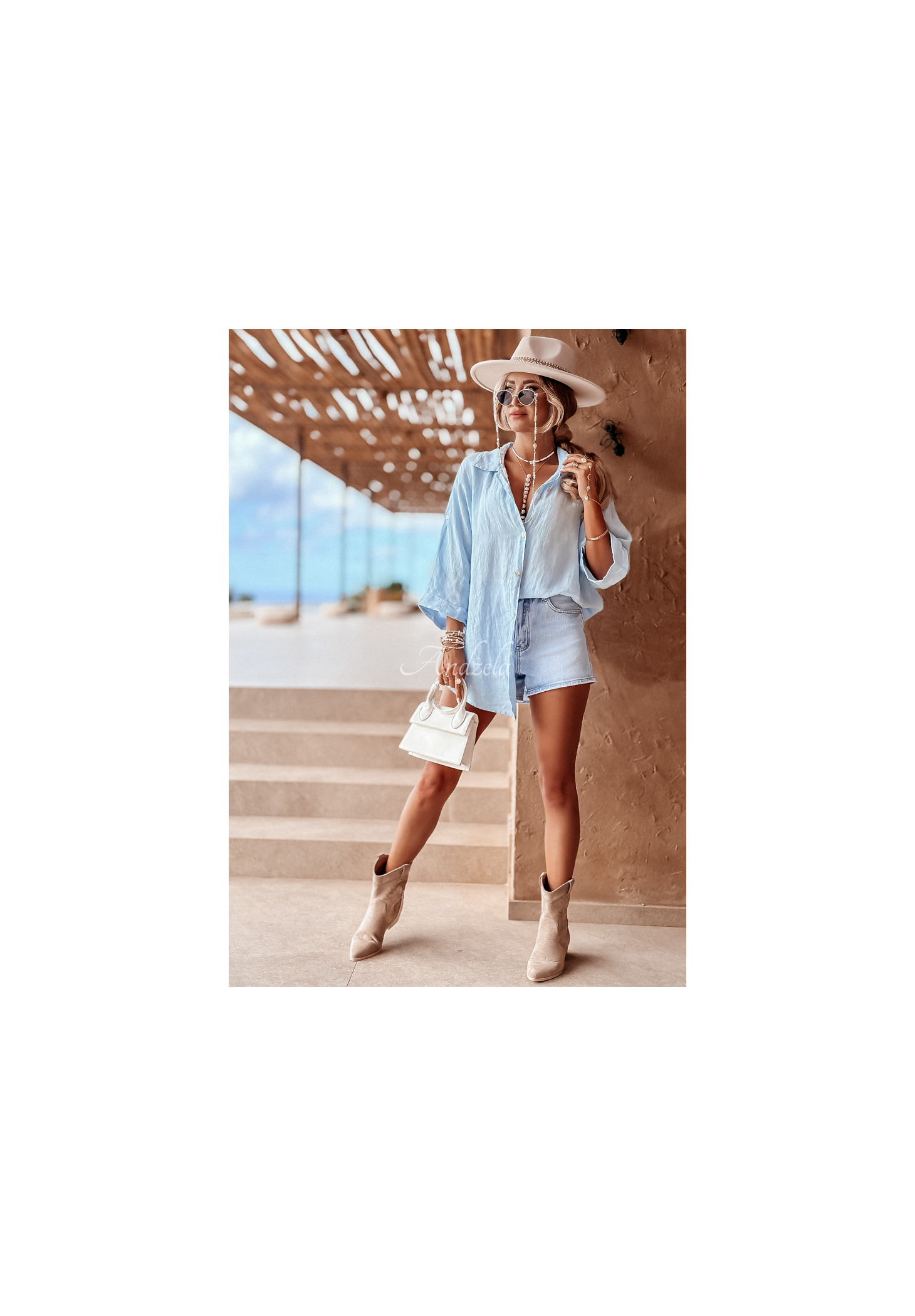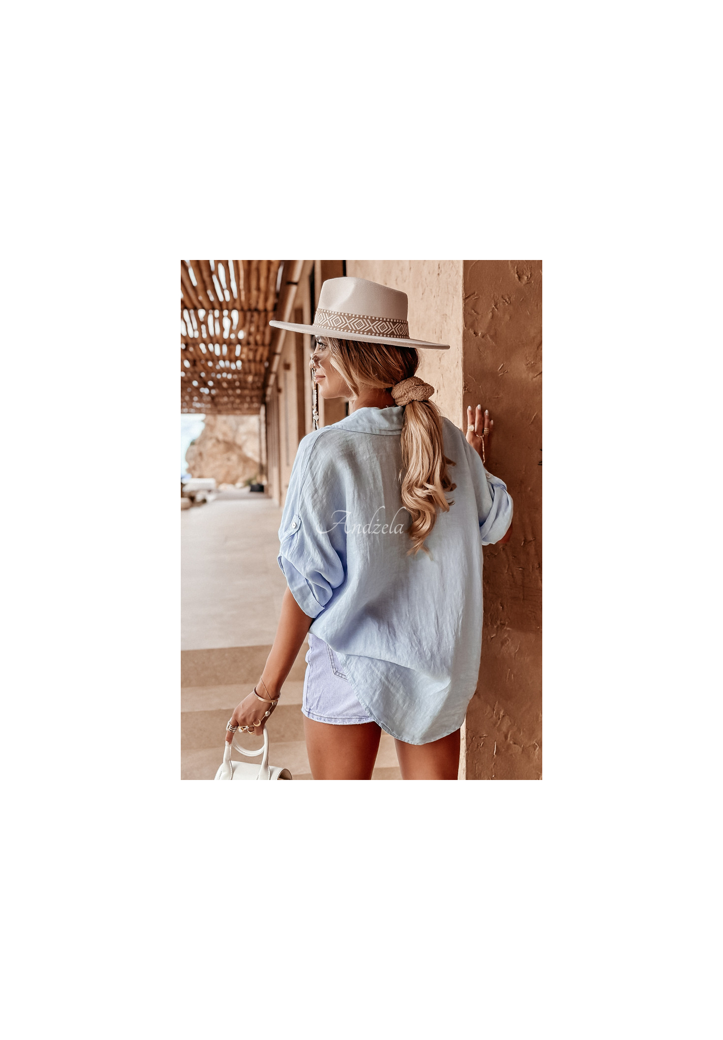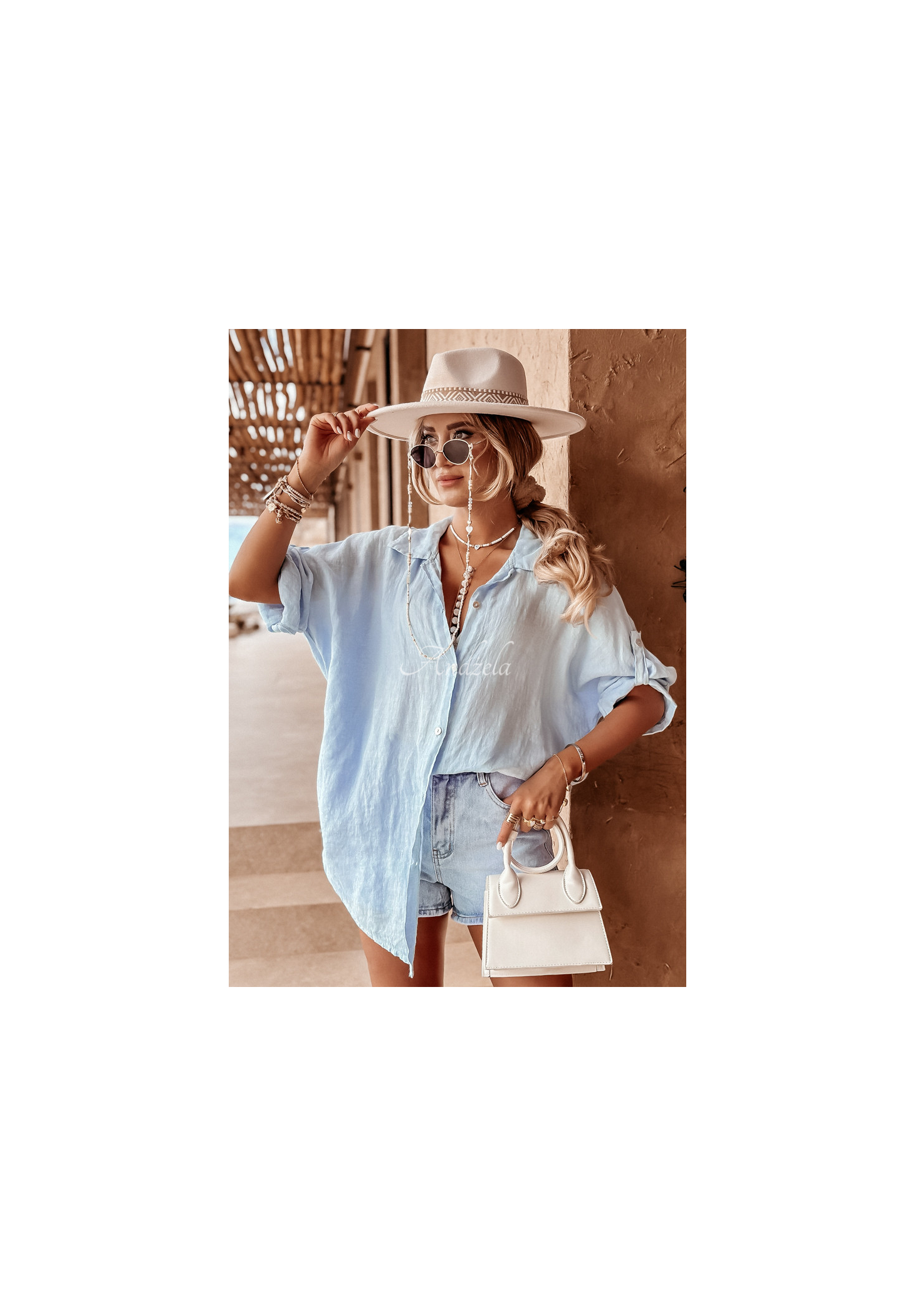 Leichtes Hemd aus hochwertigem Leinen. Es hat einen Knopfverschluss, einen Kragen und verstellbare Ärmel. Der Oversize-Schnitt passt perfekt zu lockeren Outfits.