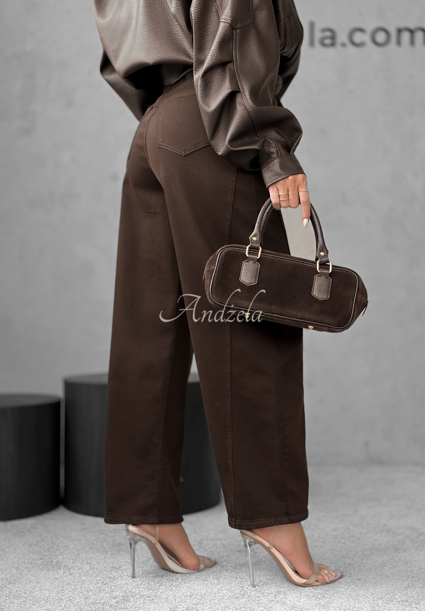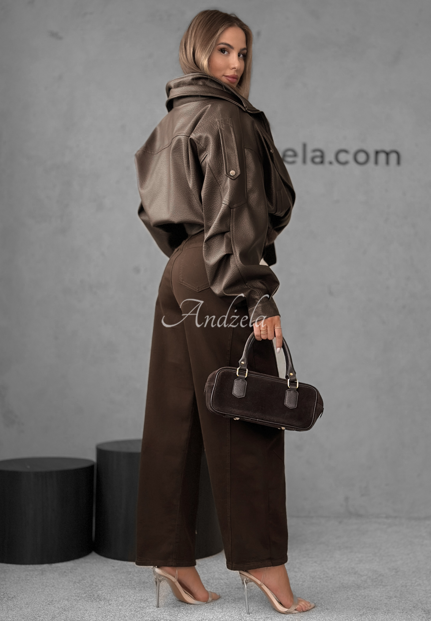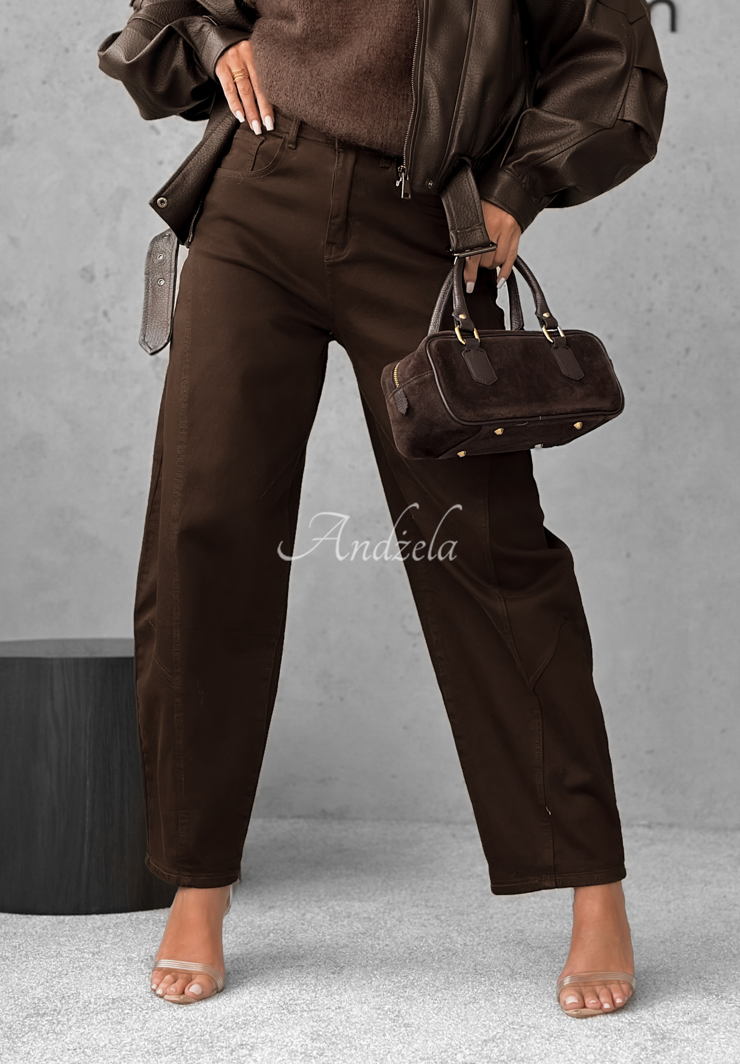 Diese Jeans ist aus elastischem Baumwollstoff gefertigt. Sie hat einen hohen Bund und weite, schmal zulaufende Beine. Praktische Taschen befinden sich vorne und hinten. Verschlossen wird sie mit einem Reißverschluss und einem Knopf.