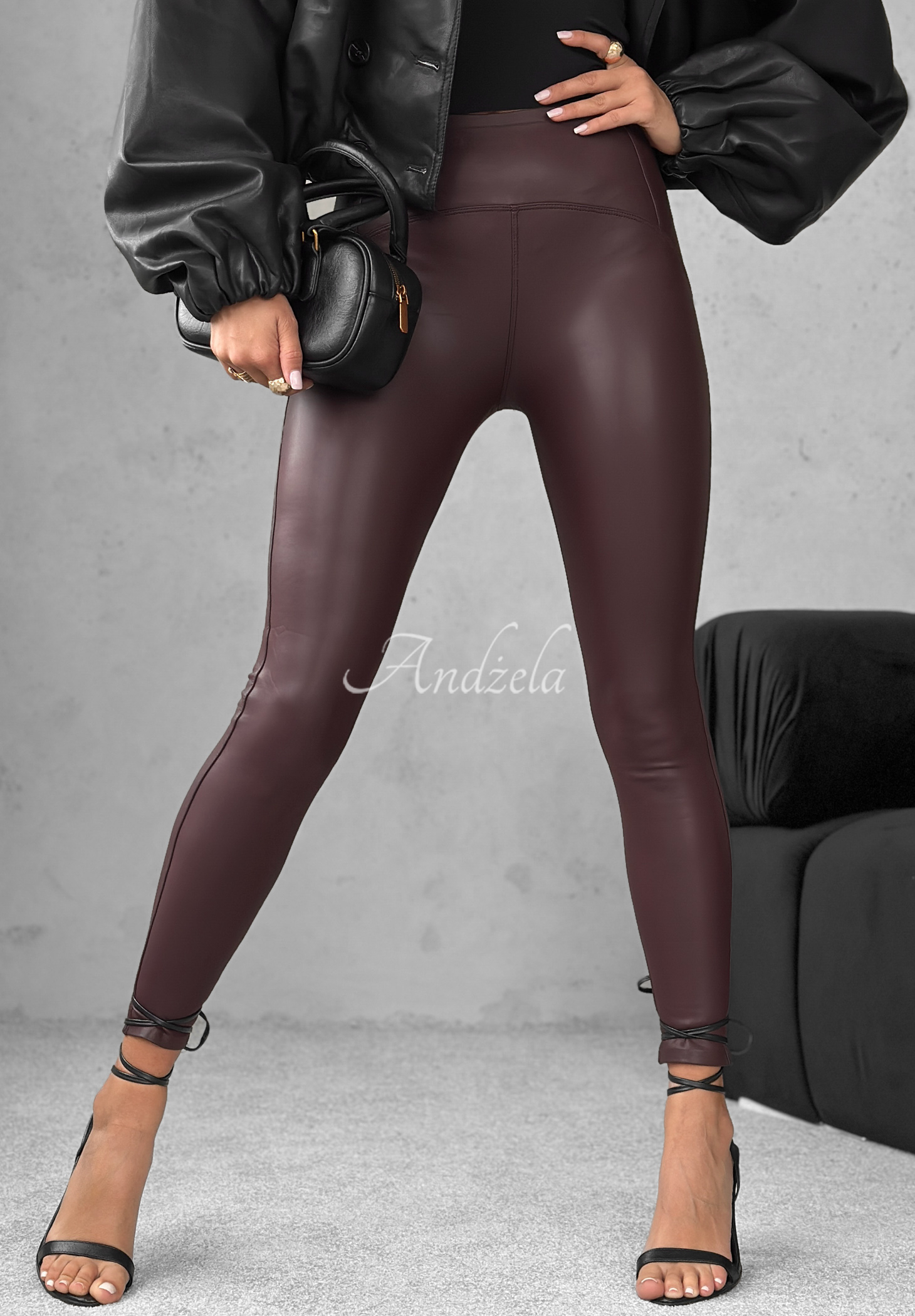 Bequeme Leggings aus Kunstleder. Sie verfügen über einen elastischen Bund und sind leicht gefüttert. Das dehnbare Design passt sich perfekt Ihrer Figur an.