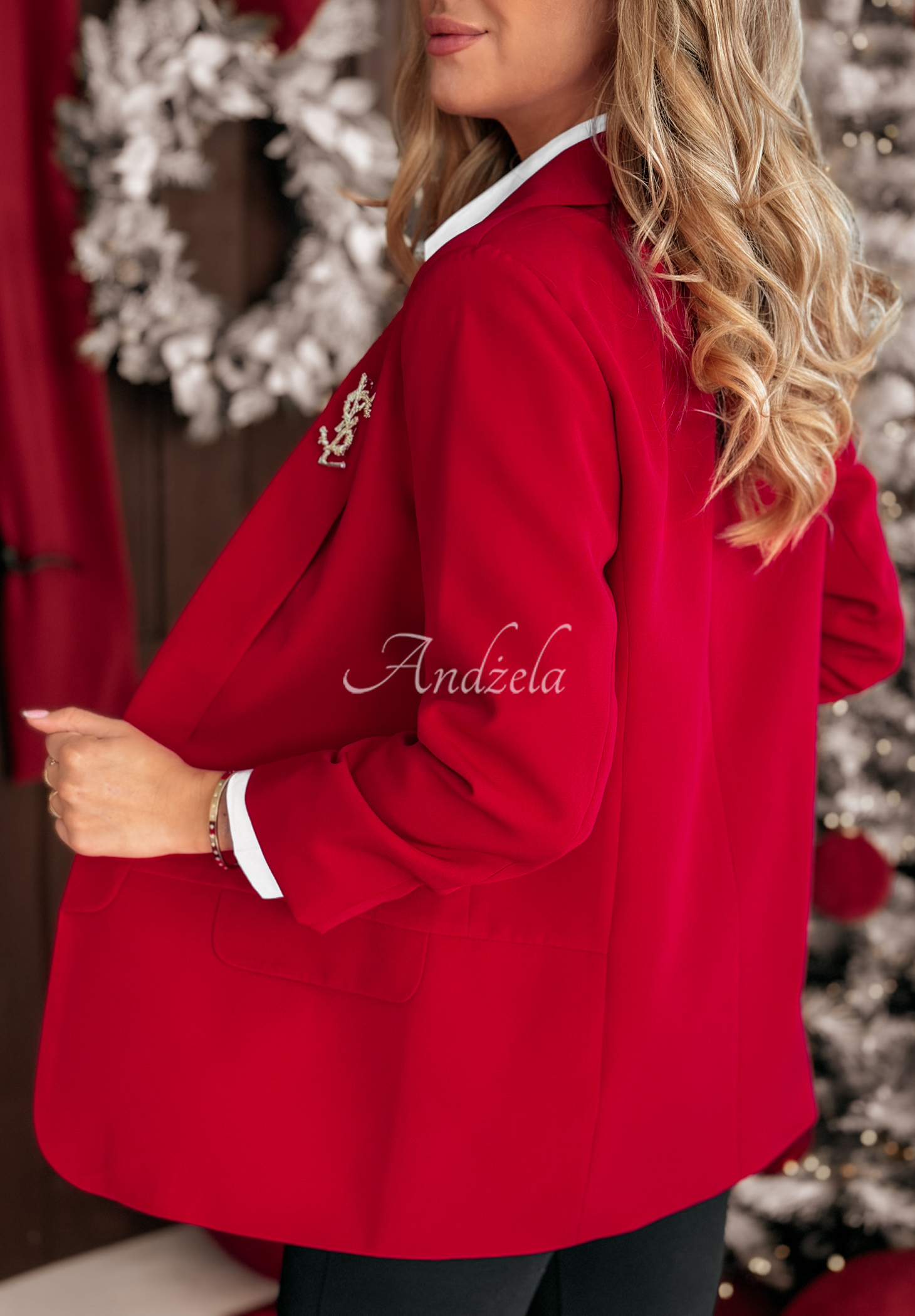 Schöne rote, sorgfältig genähte und verpackte Jacke. Angenehmes Material und knittert nicht - ideal für Büroarbeit, Meetings etc.