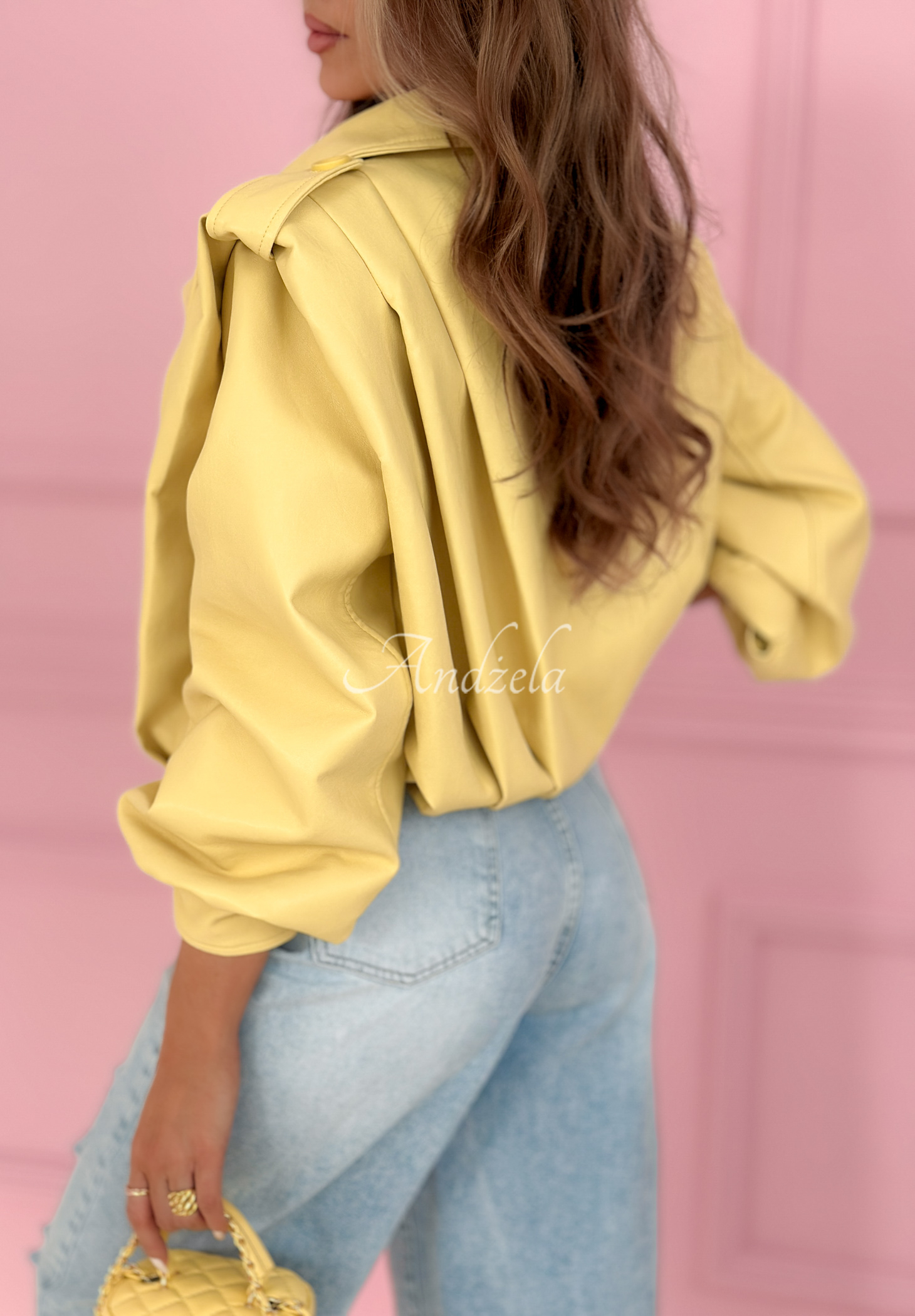 Kurze Lederjacke mit Kragen Valleria Gelb