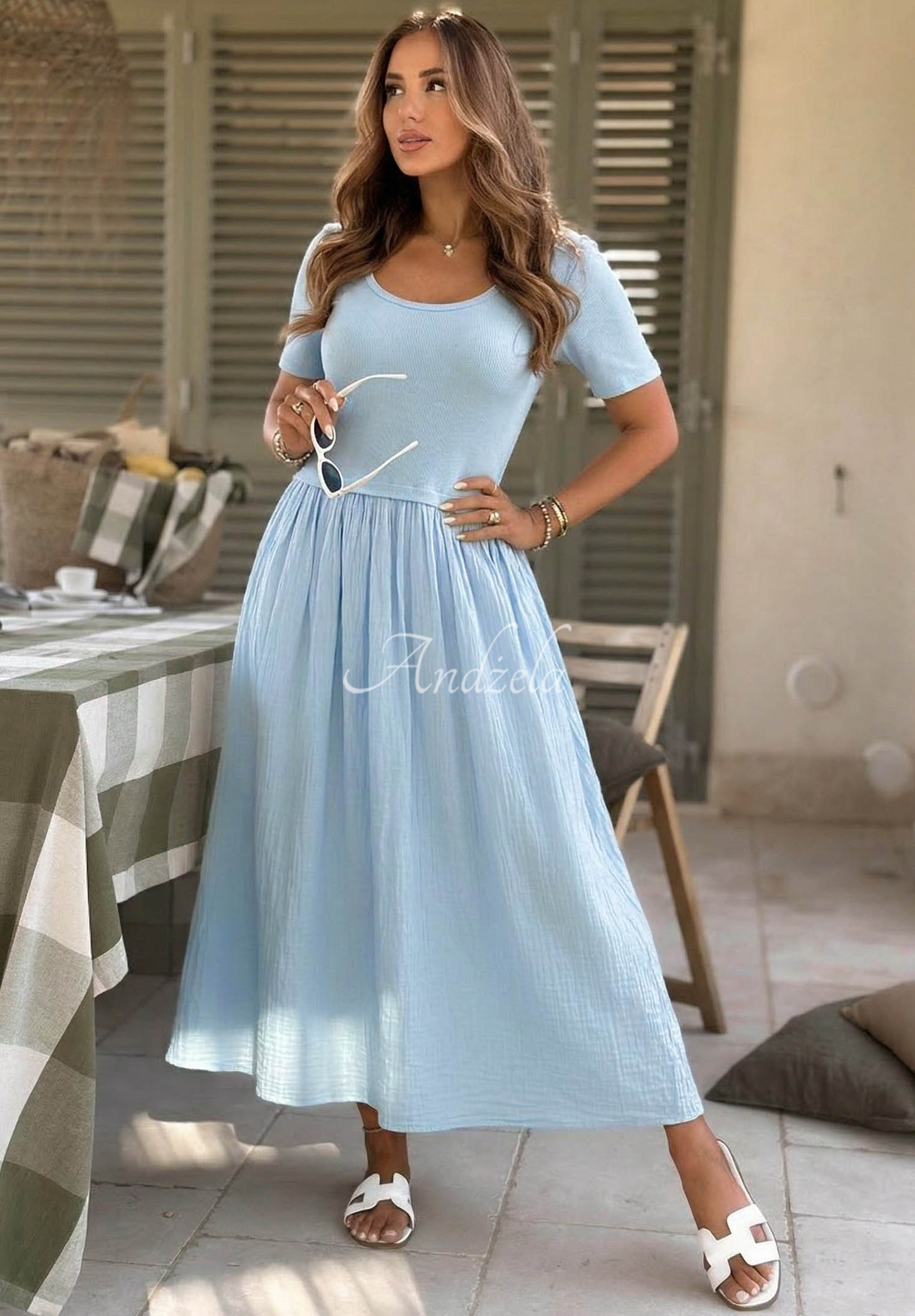 Luftiges Baumwoll-Midikleid Primavera Mia Blau