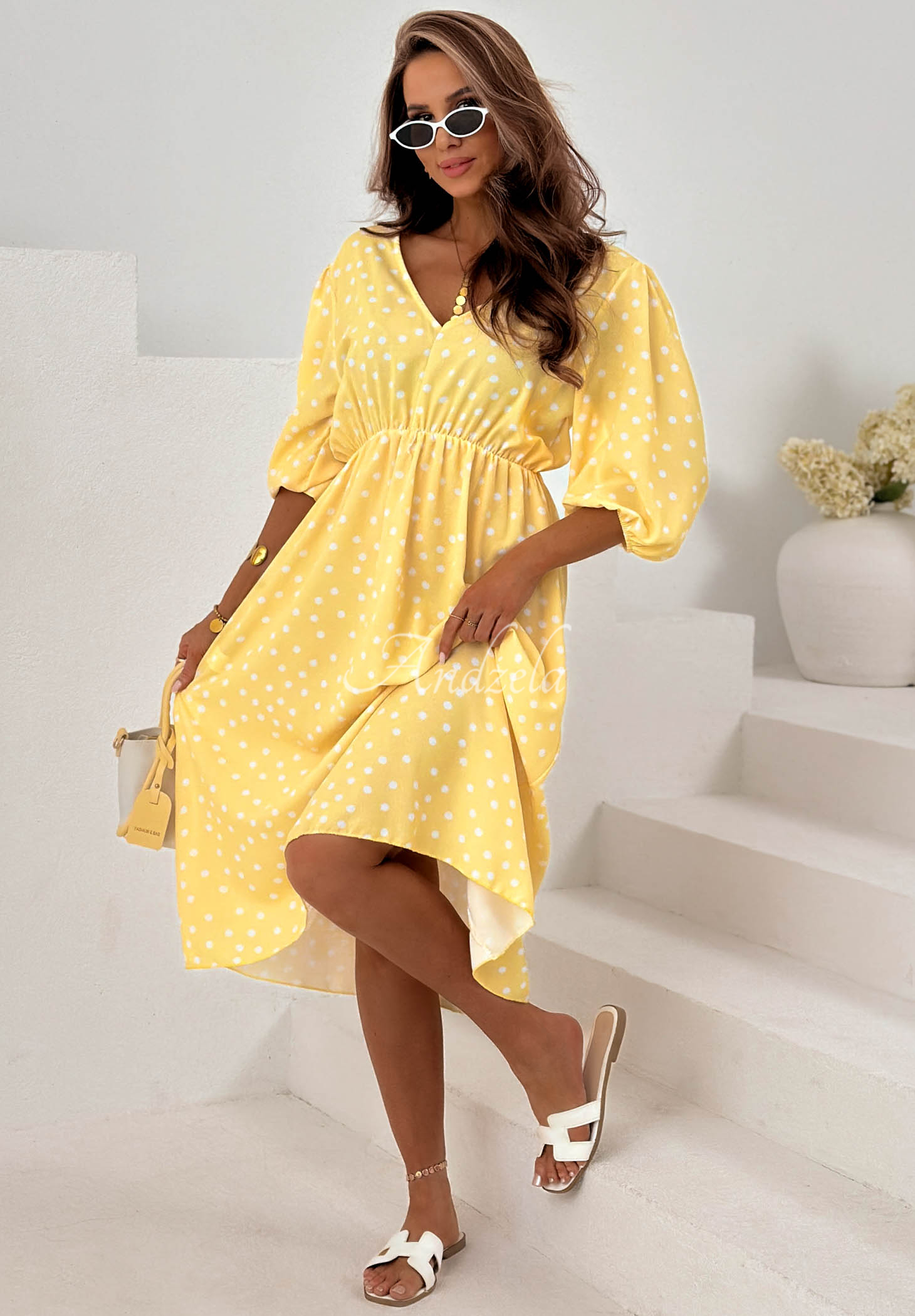 Gepunktetes Midikleid aus Viskose Portofino Gelb