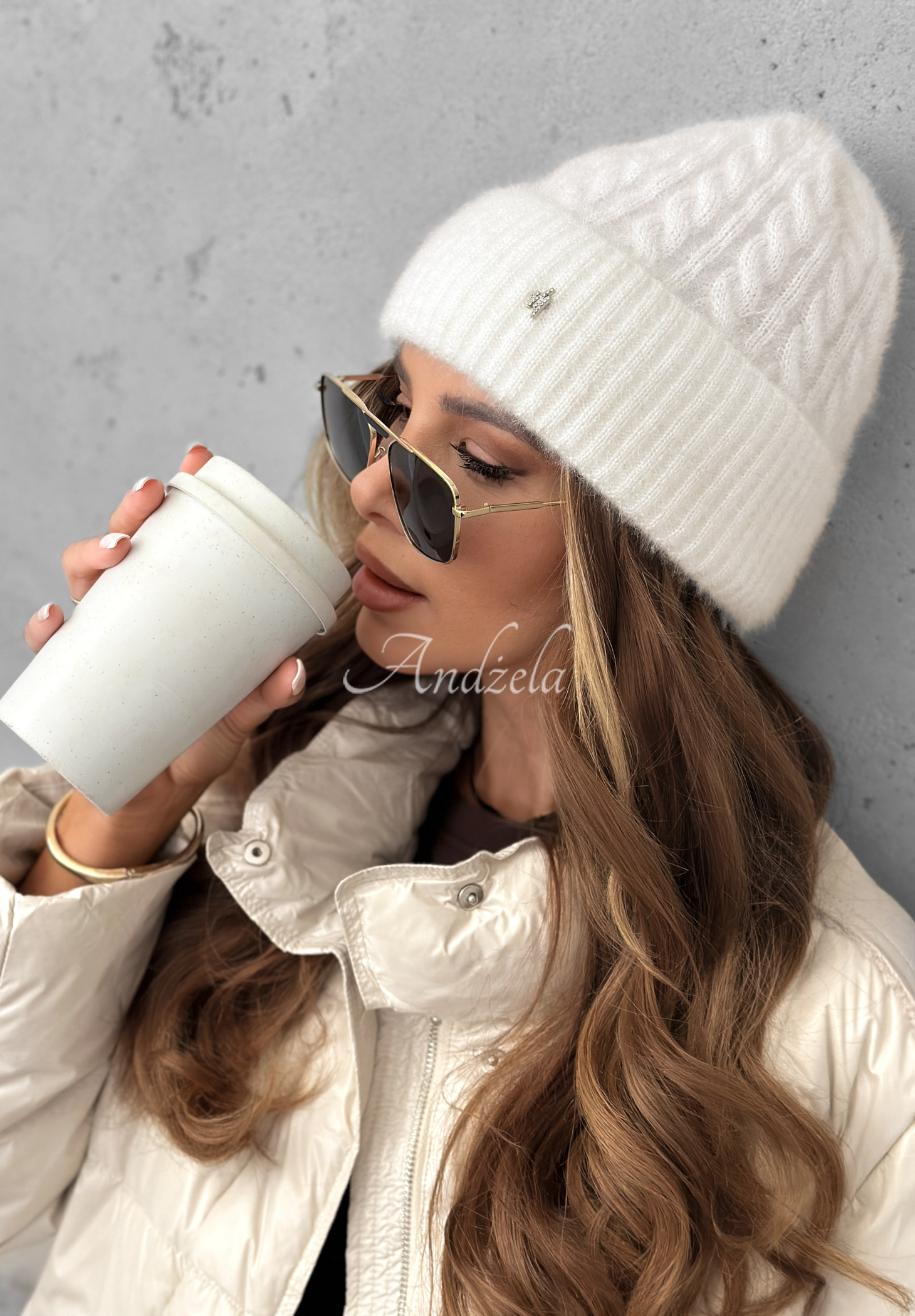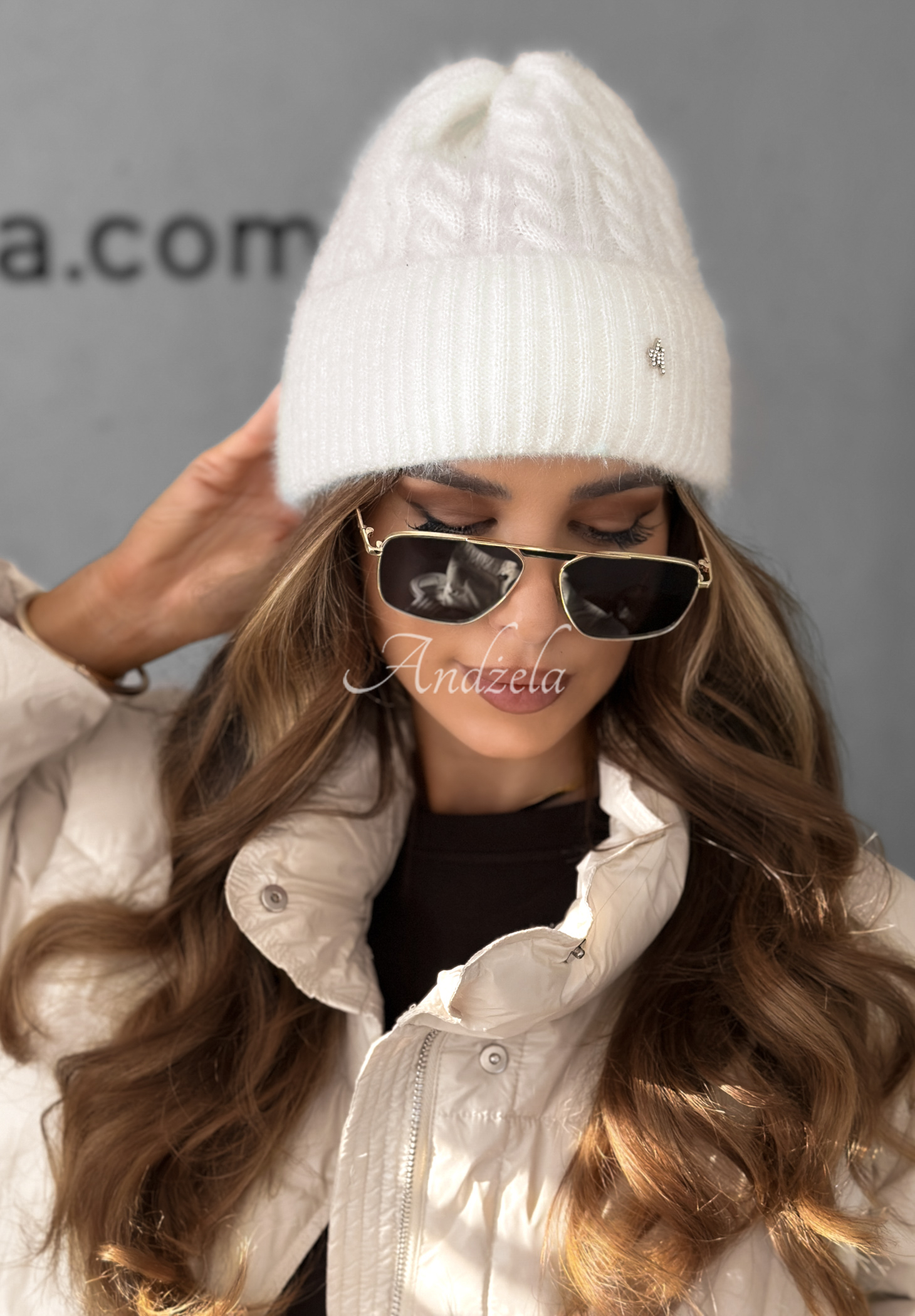 Diese Mütze ist aus weichem Material gefertigt. Sie besticht durch ihr minimalistisches Design mit einem dezenten Silberdetail auf der Vorderseite und einem Umschlag am unteren Saum.