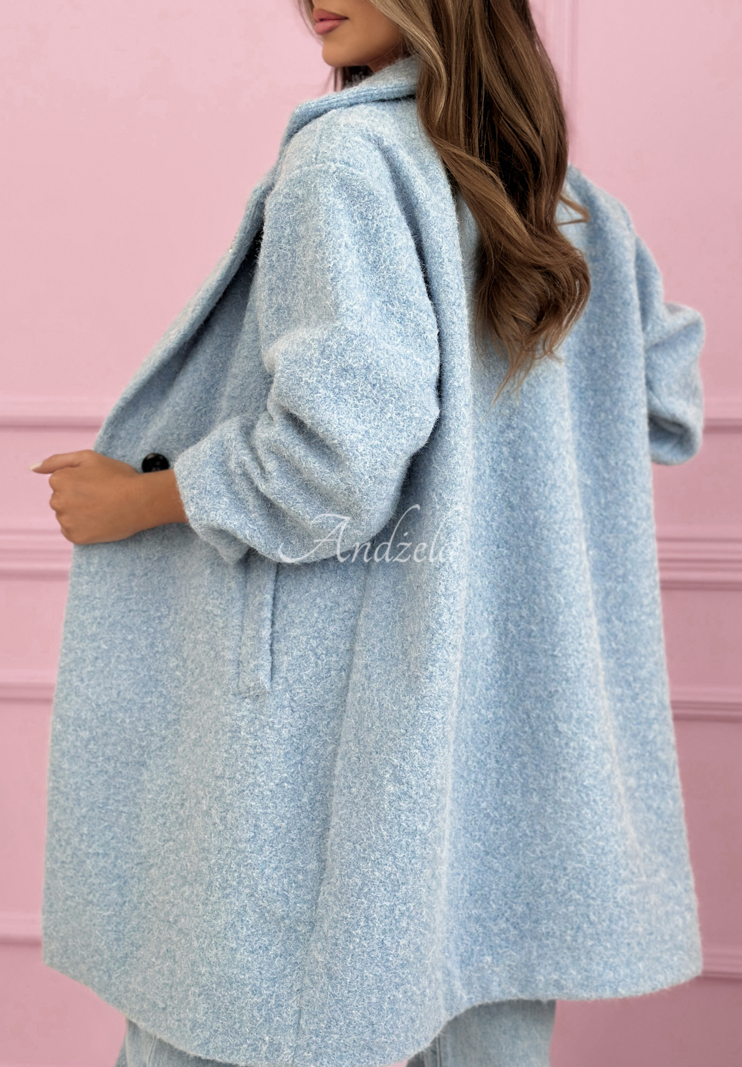 Langer Mantel aus Lammfellimitat mit Kragen Create The Impossible Himmelblau