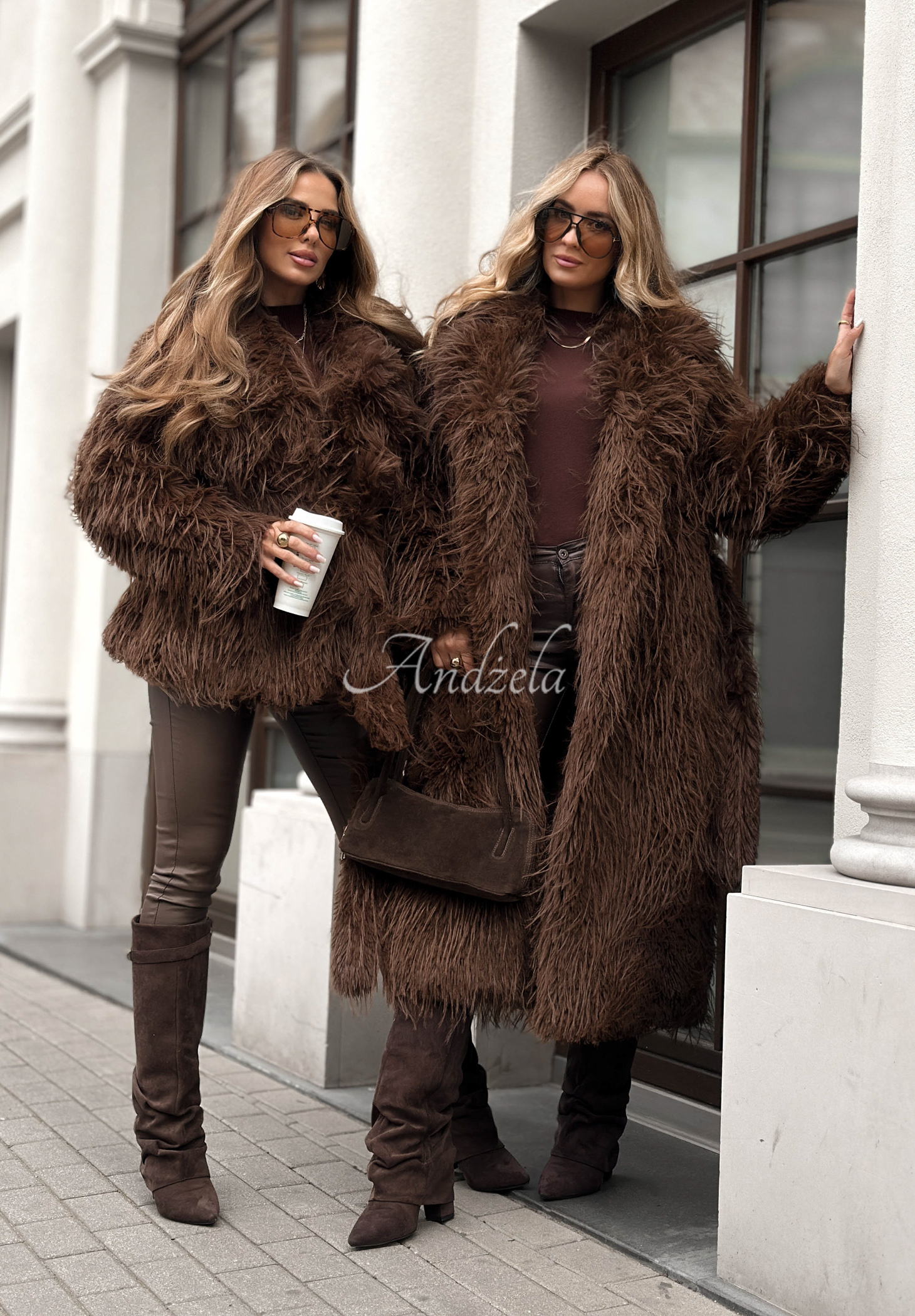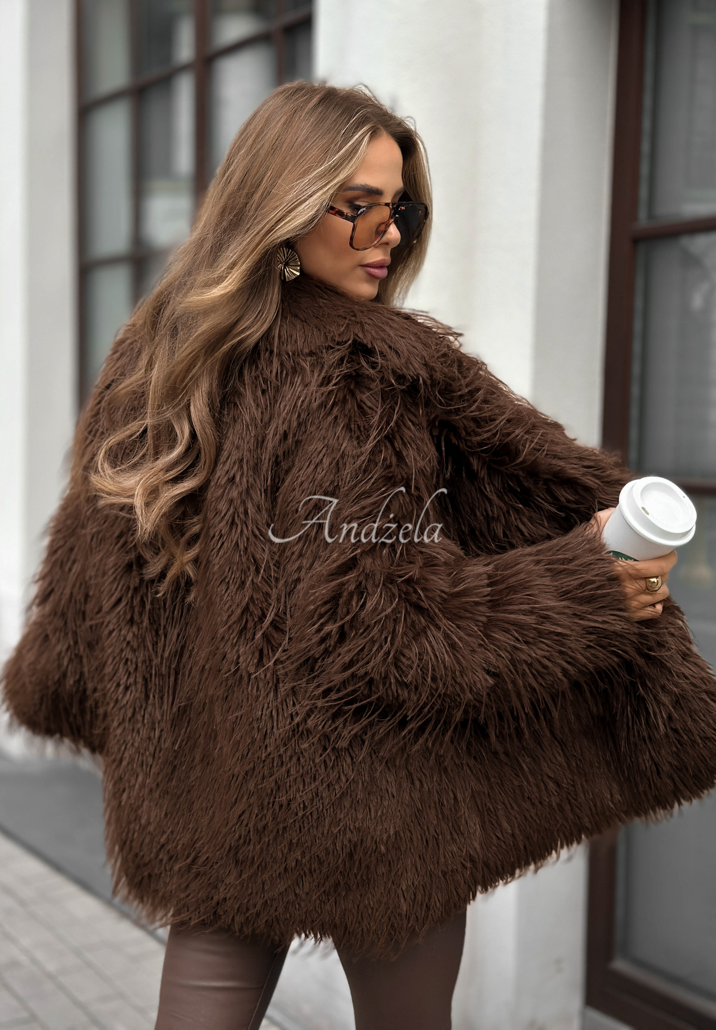 Kurzer Wollmantel mit Angorafell Show Me How Schokoladenbraun