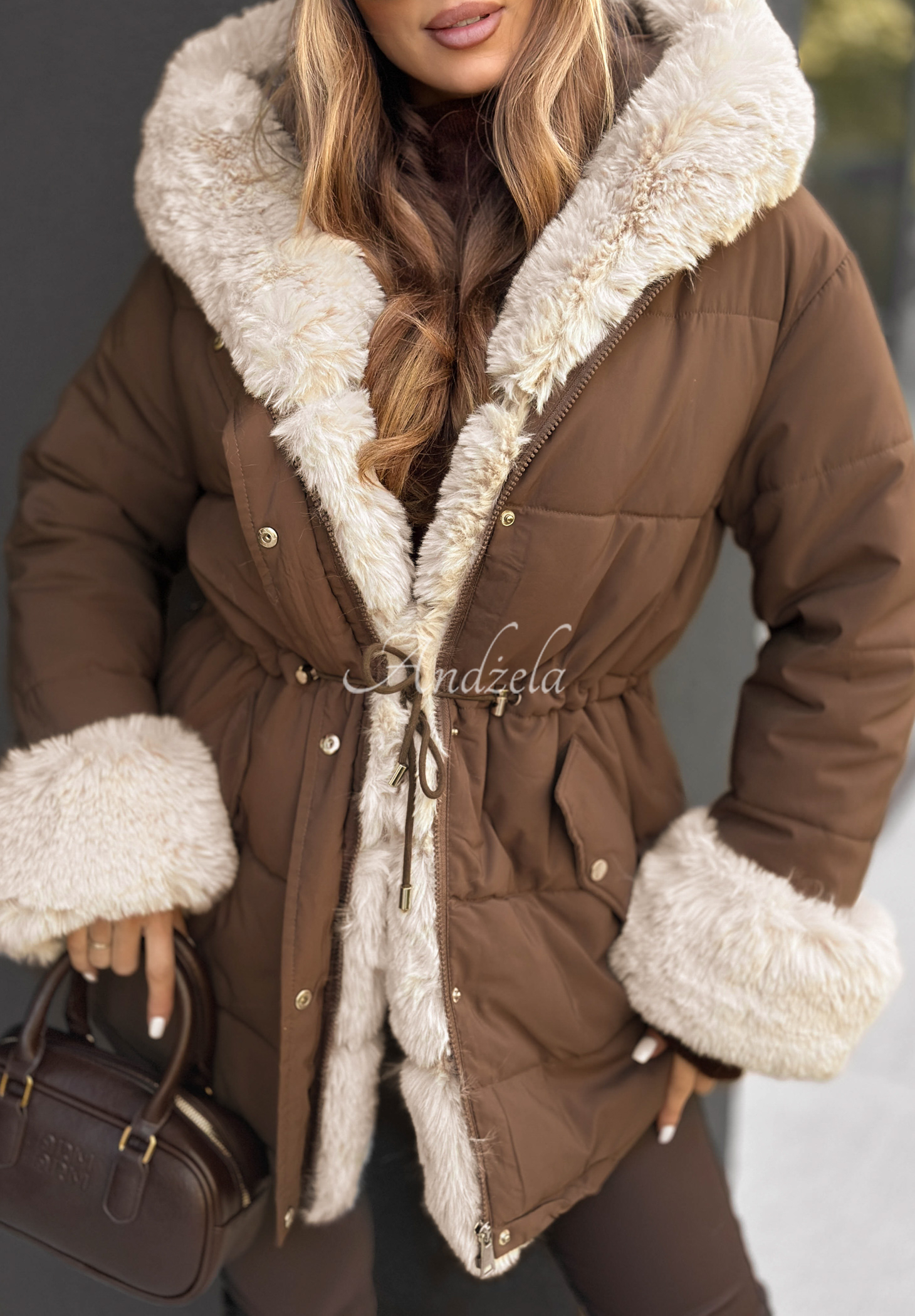 * Abnehmbarer Kunstfellbesatz an Kapuze und Ärmeln