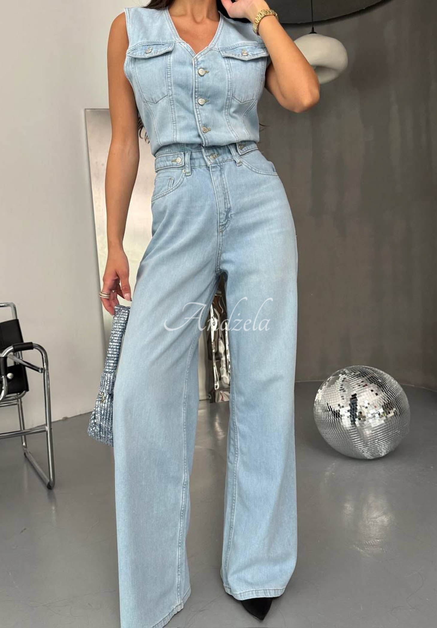 Langer Denim-Overall aus hochwertigem Baumwollstoff. Dieses Modell verfügt über praktische Taschen vorne und hinten. Er verfügt einen Knopf- und Reißverschluss, gerade, etwas weitere Hosenbeine und einen Kragen.