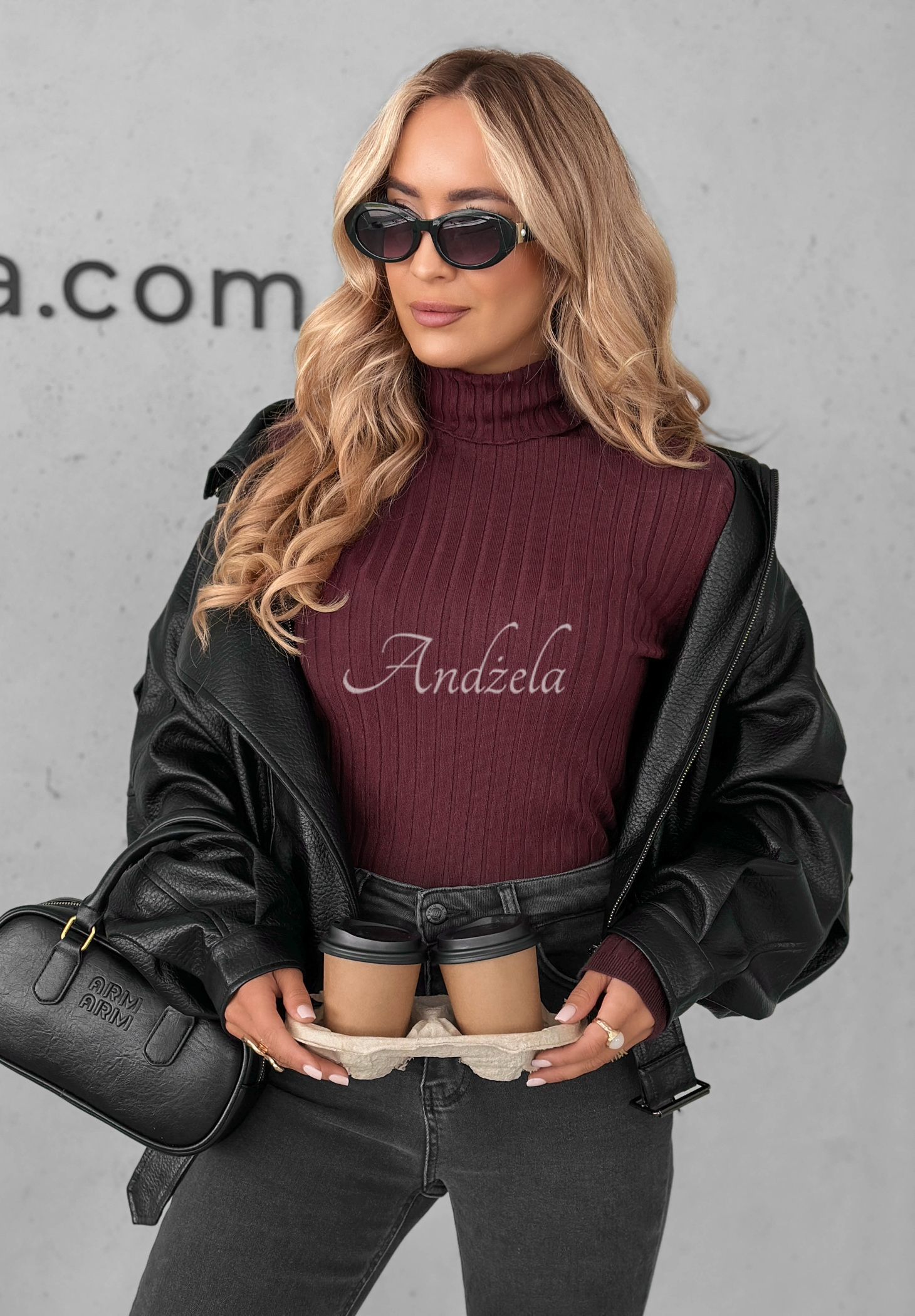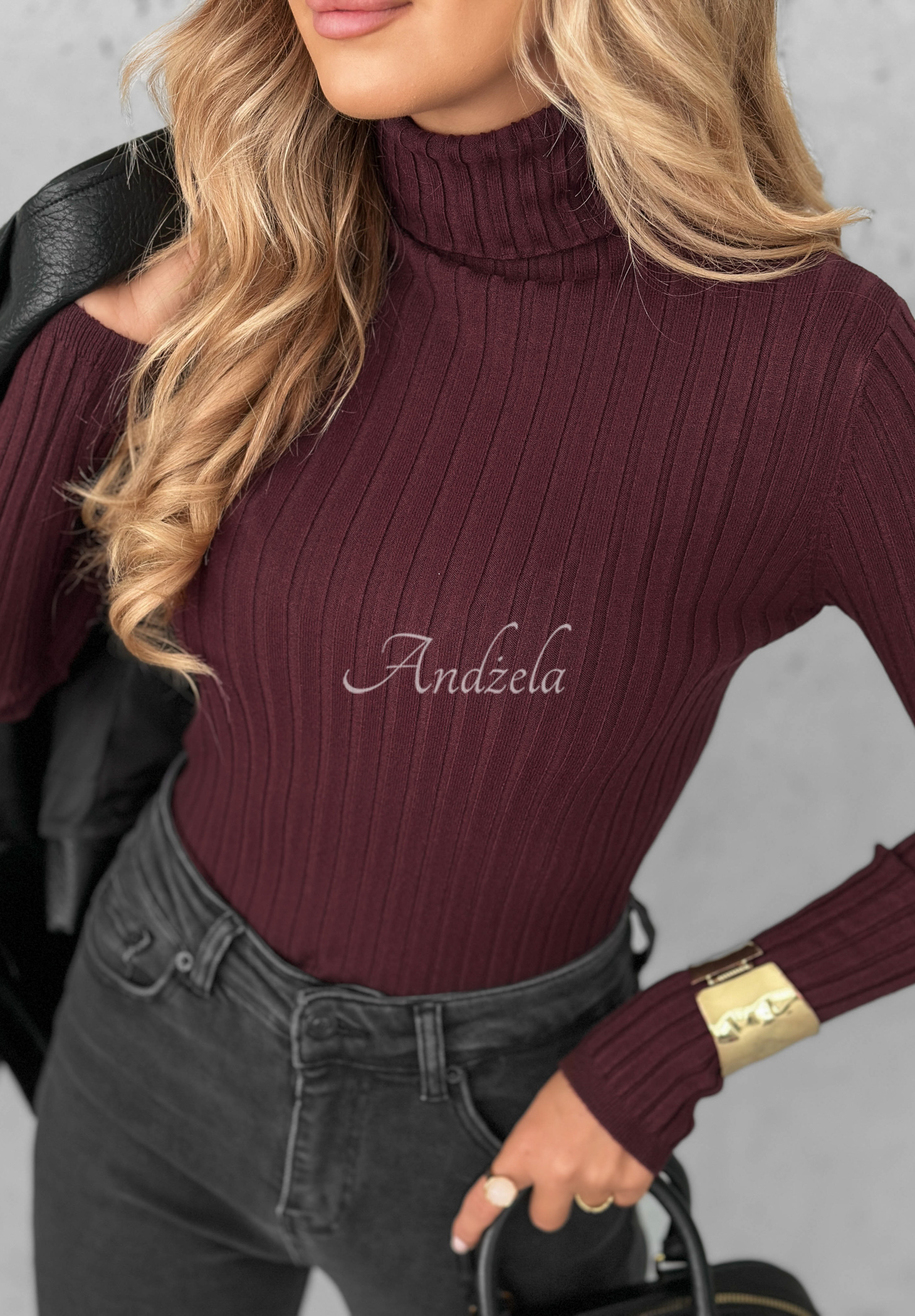 Ein leichter Rollkragenpullover ist definitiv die perfekte Basis für viele Styles. Es besteht aus geripptem, elastischem Stoff, der sich perfekt an die Figur anpasst. Es handelt sich um ein Modell mit längeren Ärmeln, die wie der Saum mit Bündchen versehen sind.