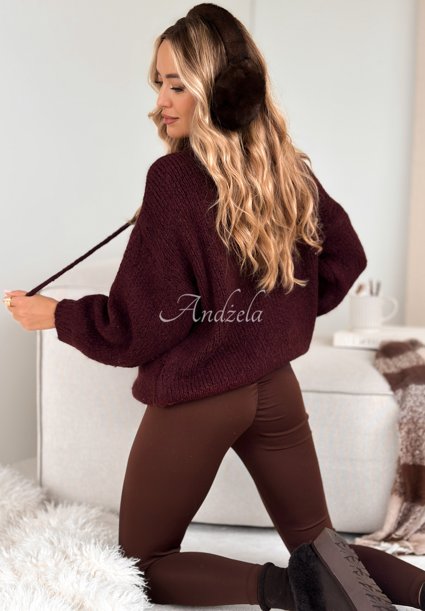 Oversize-Pullover mit Schnürung und Wolle Hug Me Tight Burgunderrot