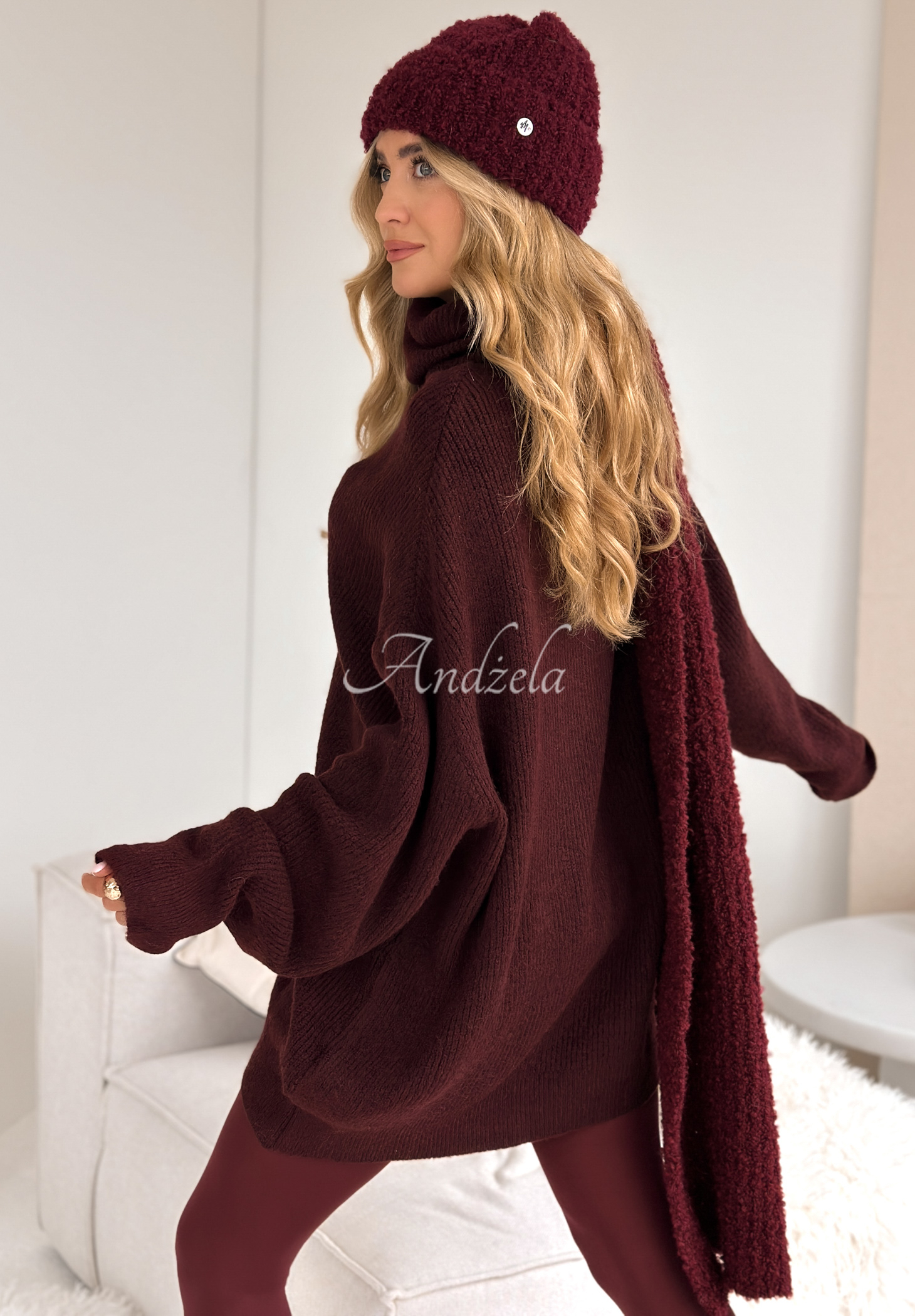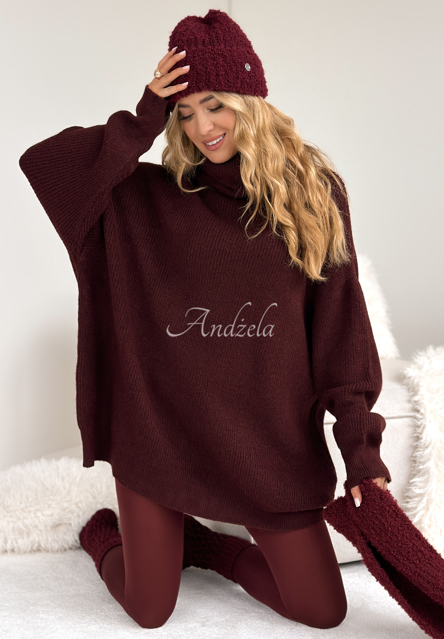 Oversize-Pullover mit verlängertem Schnitt ist eine perfekte Basis für das tägliche Styling. Das Design hat einen Rollkragen, die Ärmel und der Saum sind mit Rippbündchen versehen. Dieses Modell ist easy zu kombinieren, vor allem mit Stiefeletten oder Sportschuhen großartig. Das Produkt ist in mehreren Farbvarianten erhältlich.