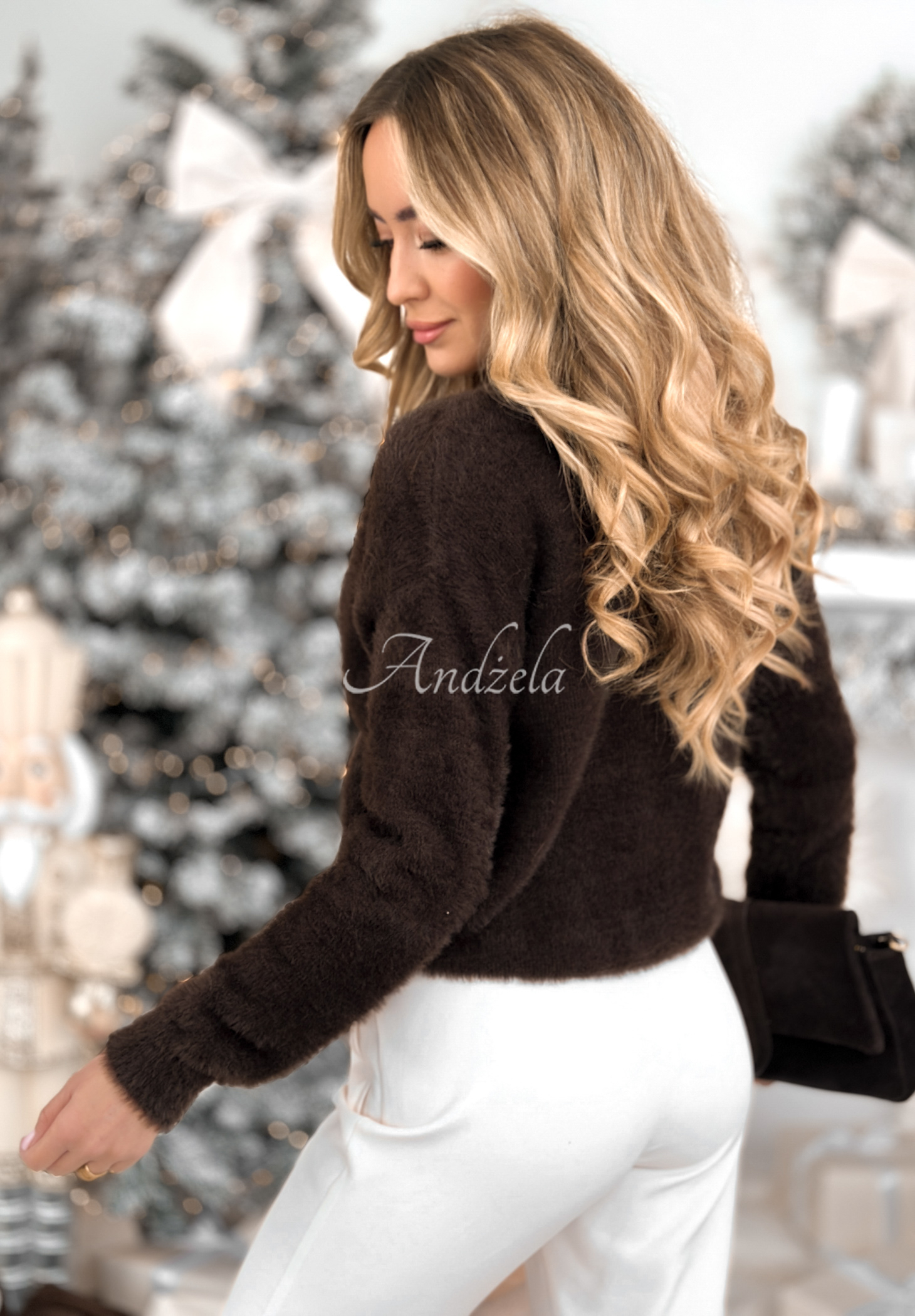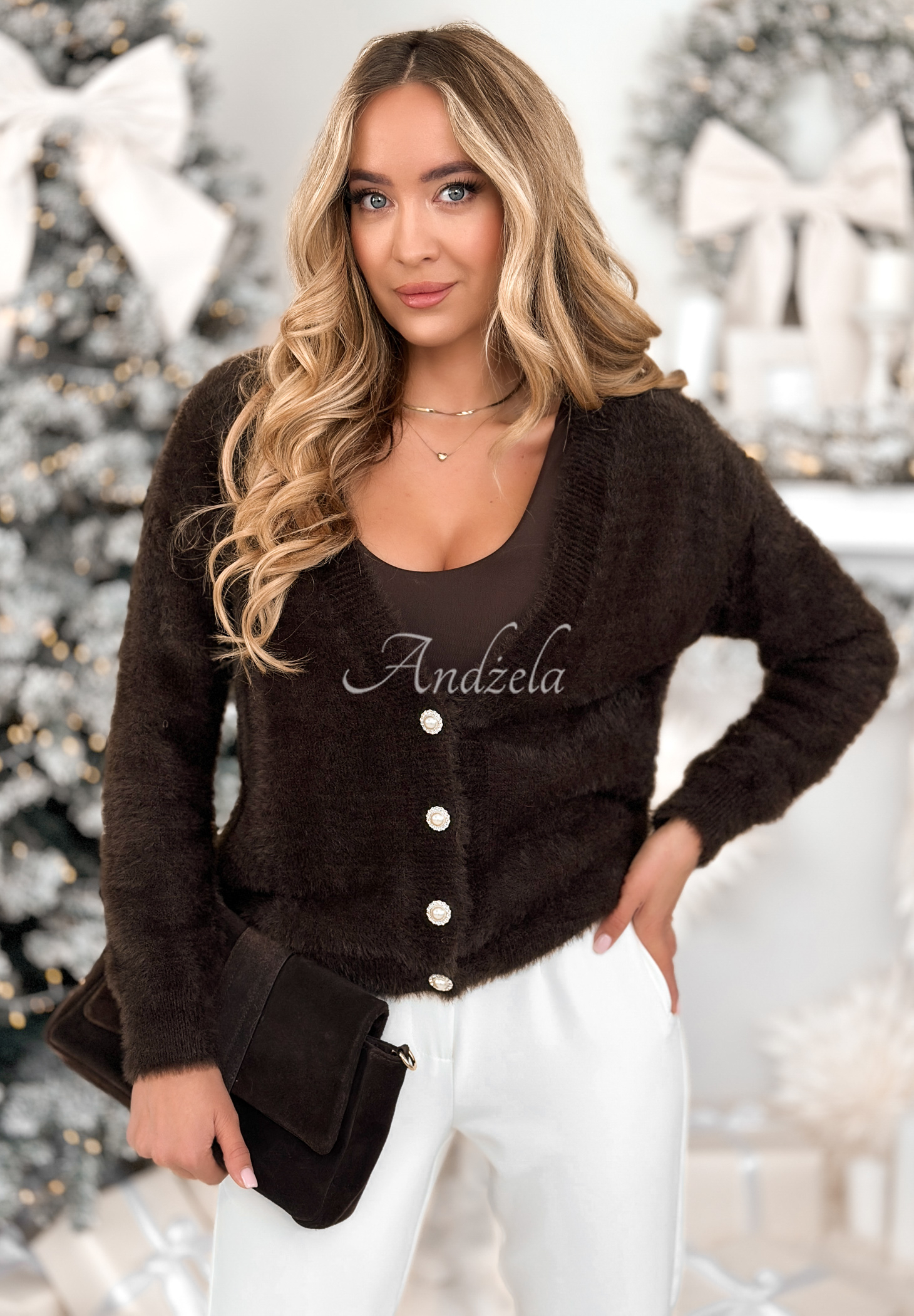 Kurzer Alpaka-Cardigan Touch The Clouds Schokoladenbraun