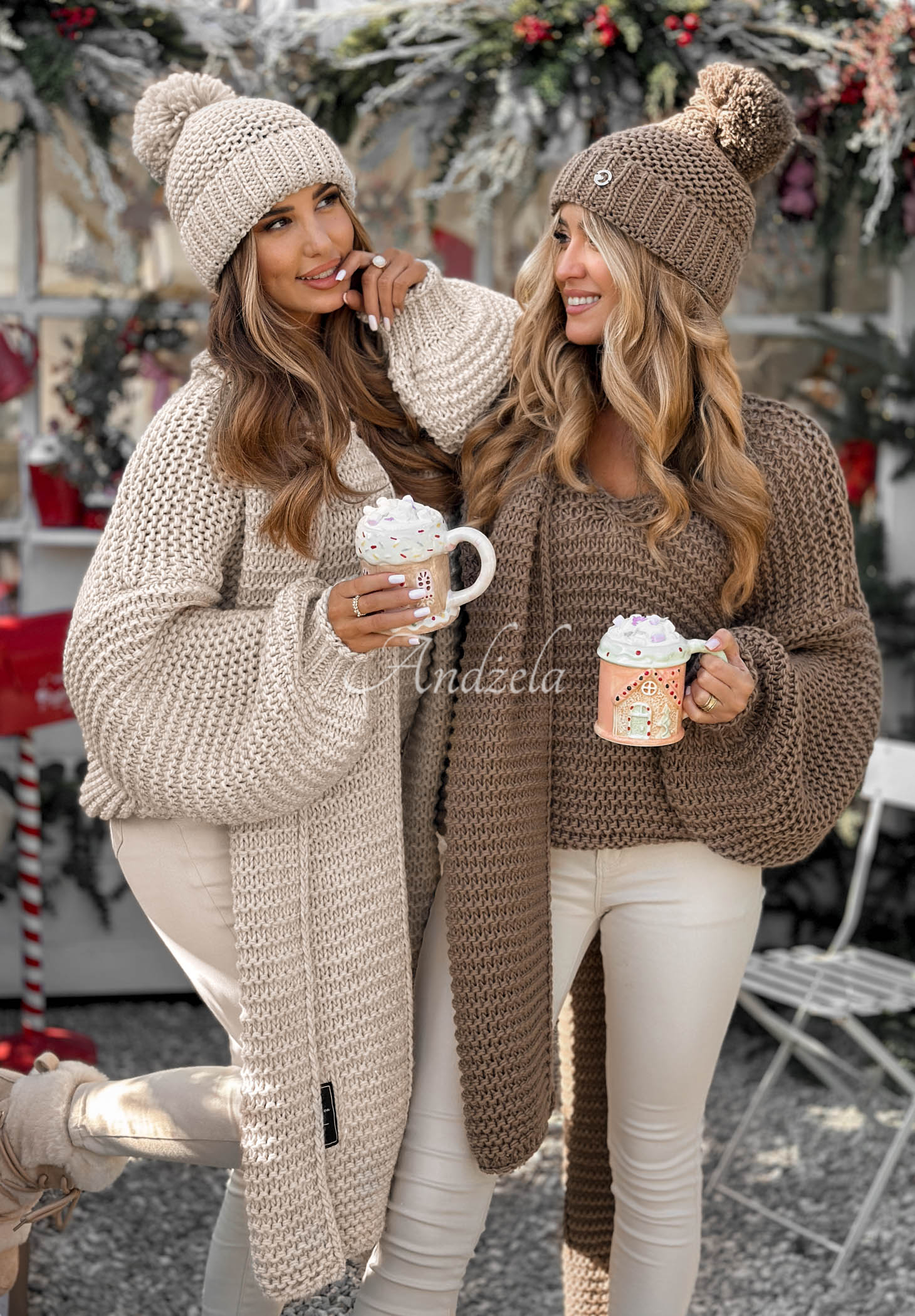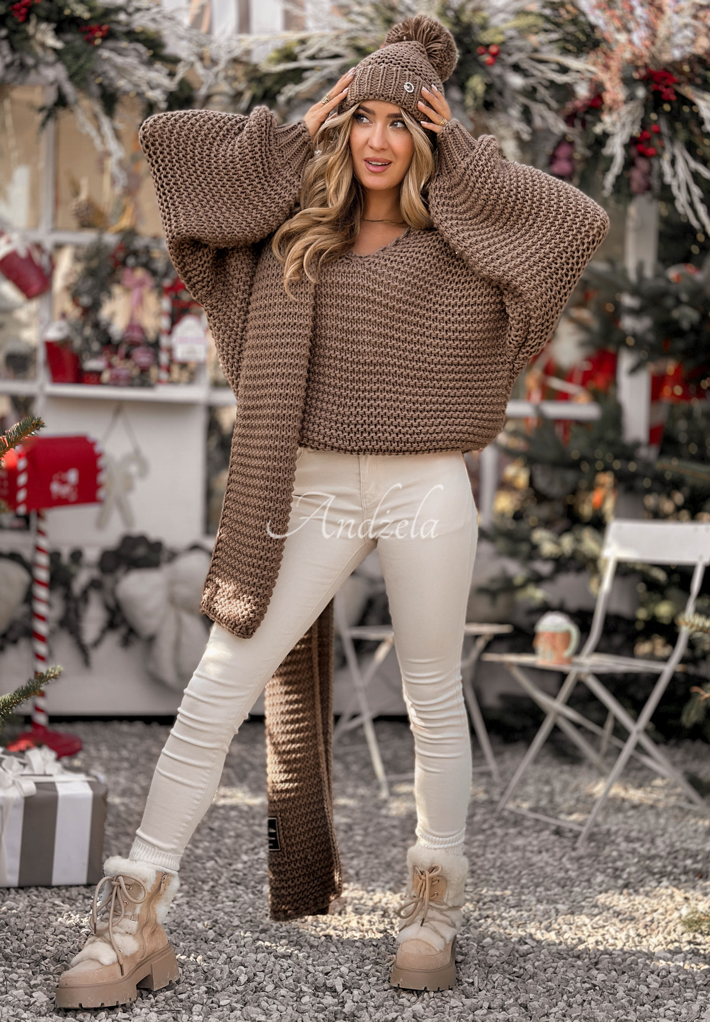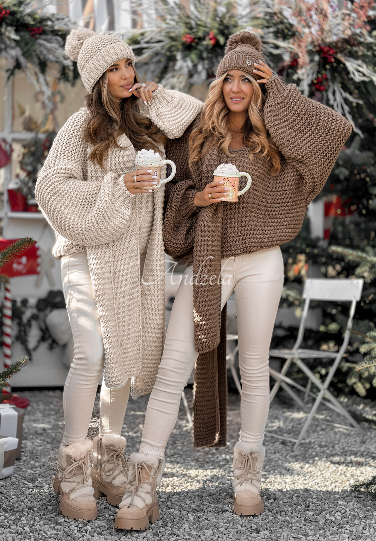 Gestrickter Wollpullover Winter Is Calling Mokkafarben