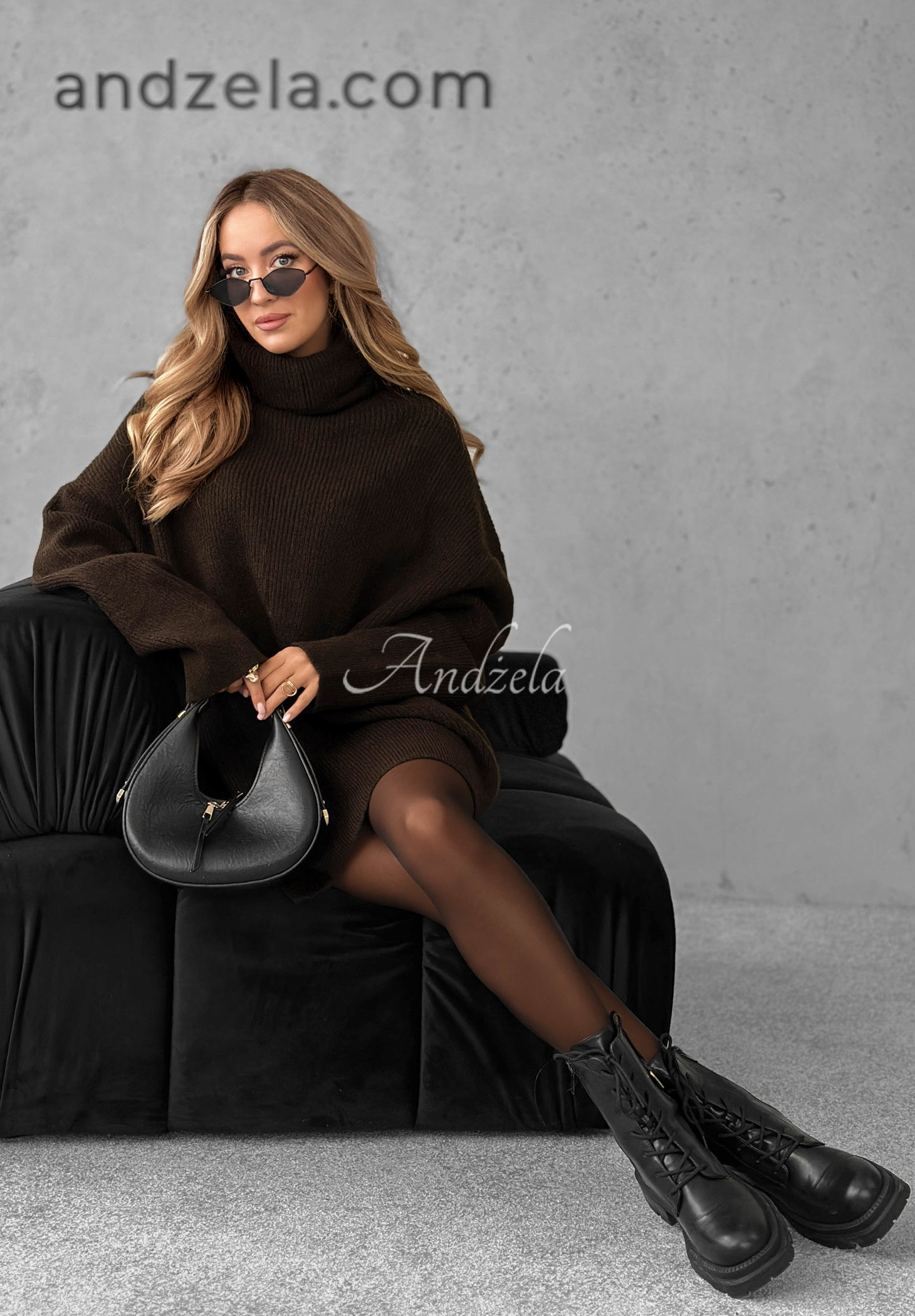 Oversize-Pullover mit verlängertem Schnitt ist eine perfekte Basis für das tägliche Styling. Das Design hat einen Rollkragen, die Ärmel und der Saum sind mit Rippbündchen versehen. Dieses Modell ist easy zu kombinieren, vor allem mit Stiefeletten oder Sportschuhen großartig. Das Produkt ist in mehreren Farbvarianten erhältlich.