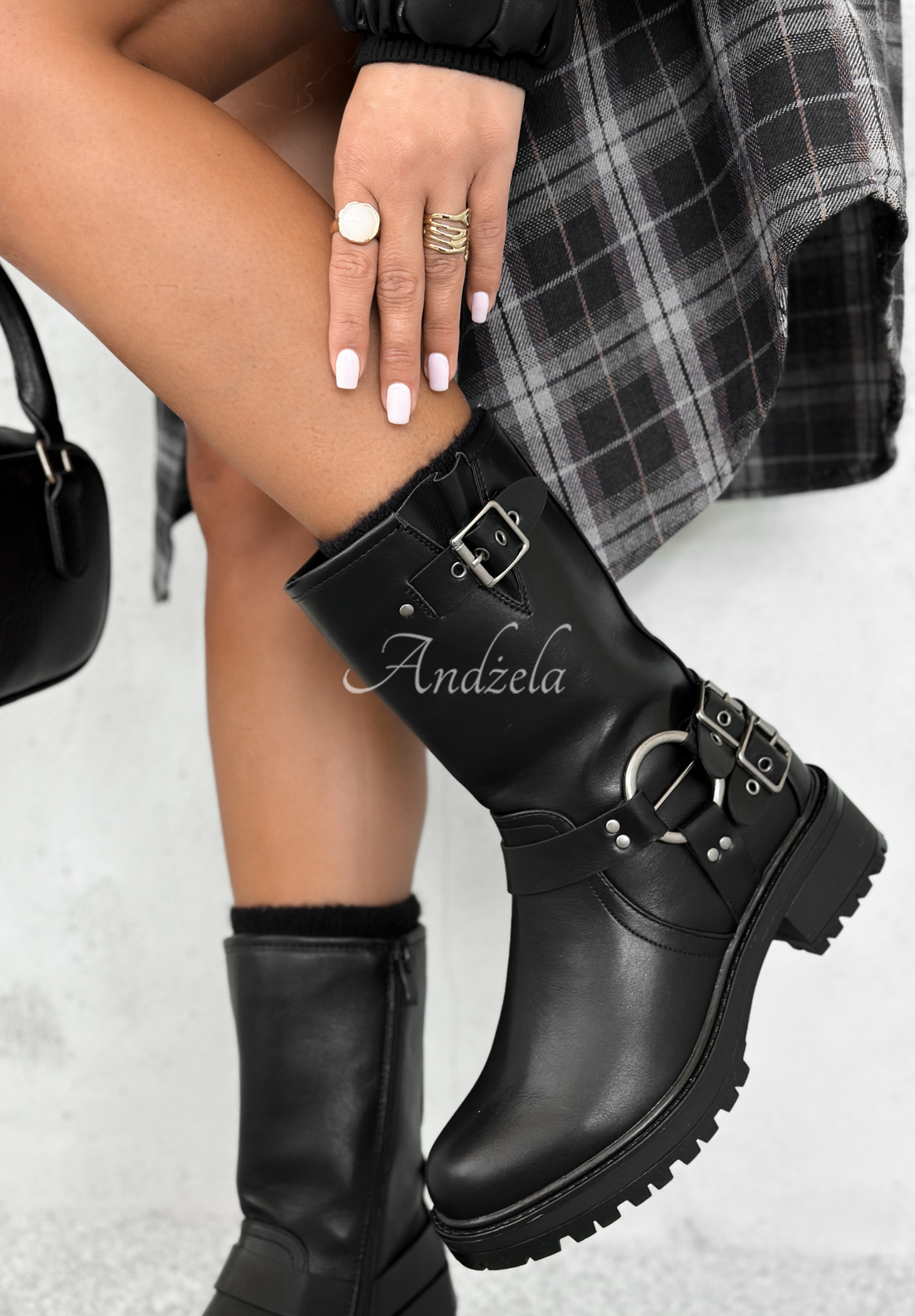 Lederstiefeletten mit Schnallen These Cold Days Schwarz