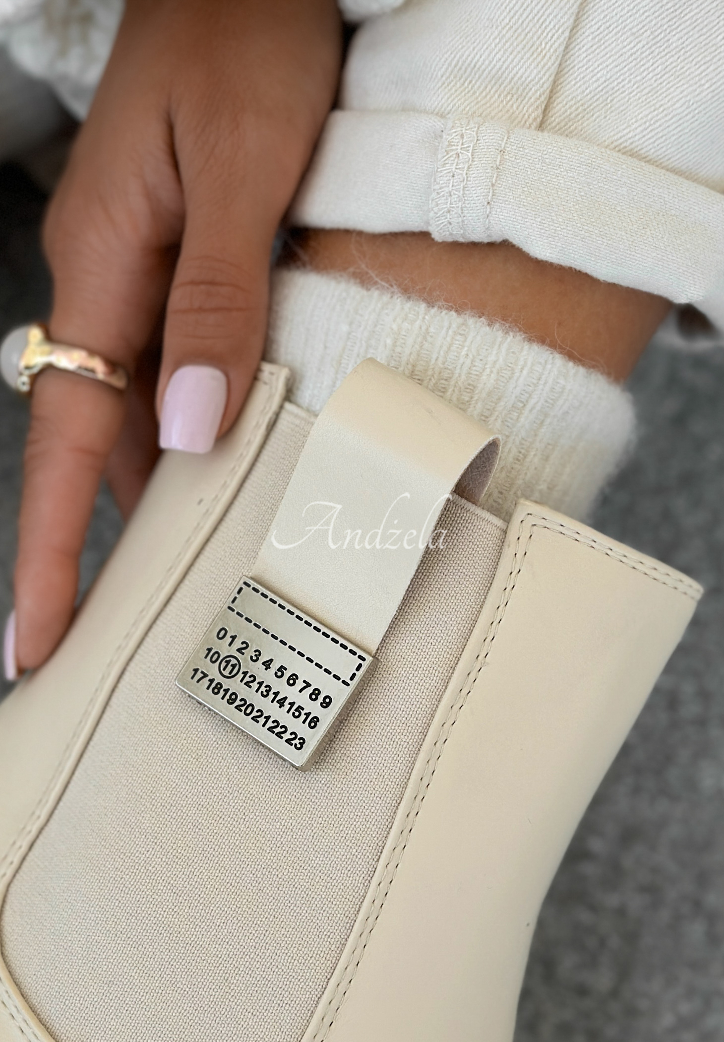 Diese Stiefeletten sind aus Kunstleder gefertigt und mit einem weichen Futter in Teddybärform ausgestattet. Sie haben eine dicke Sohle mit quadratischem Absatz und abgerundeter Spitze. Der Reißverschluss befindet sich an der Schaftinnenseite, während die andere Seite mit einem silbernen Detail verziert ist.