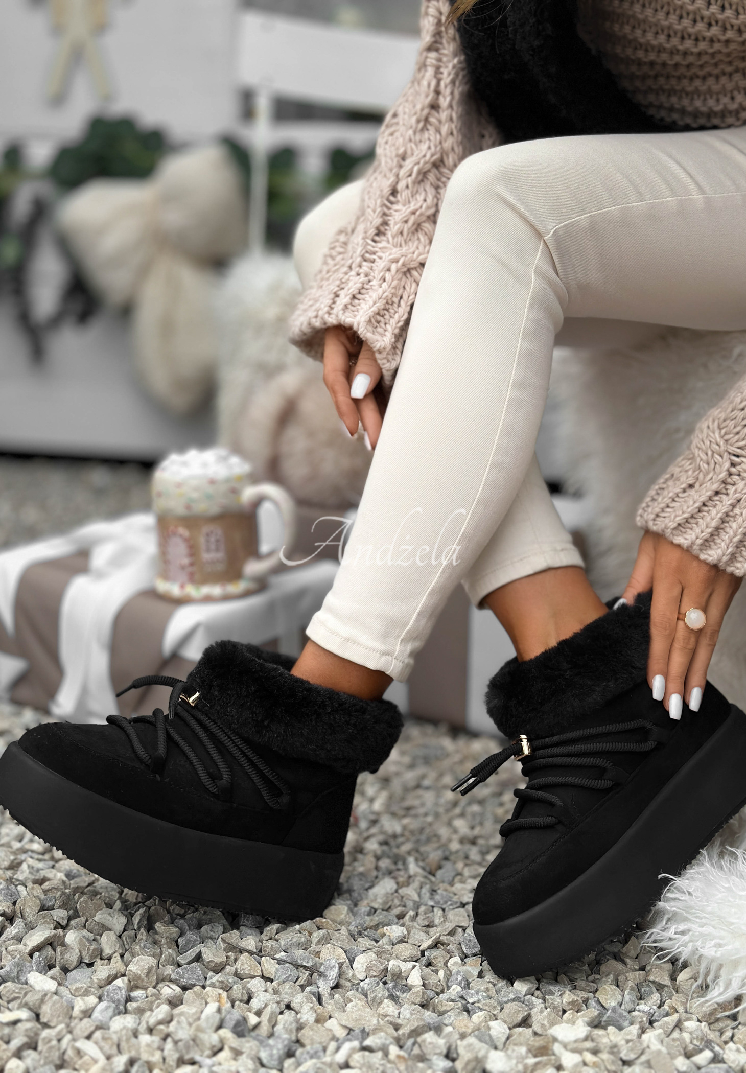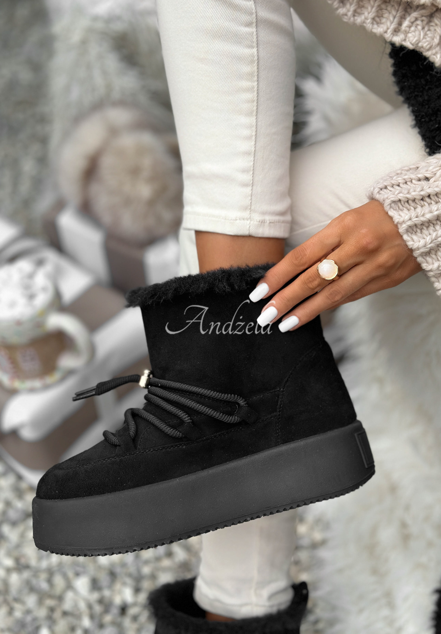 Kurze Wildleder-Schneestiefel mit Schnürung Cold As Ice Schwarz
