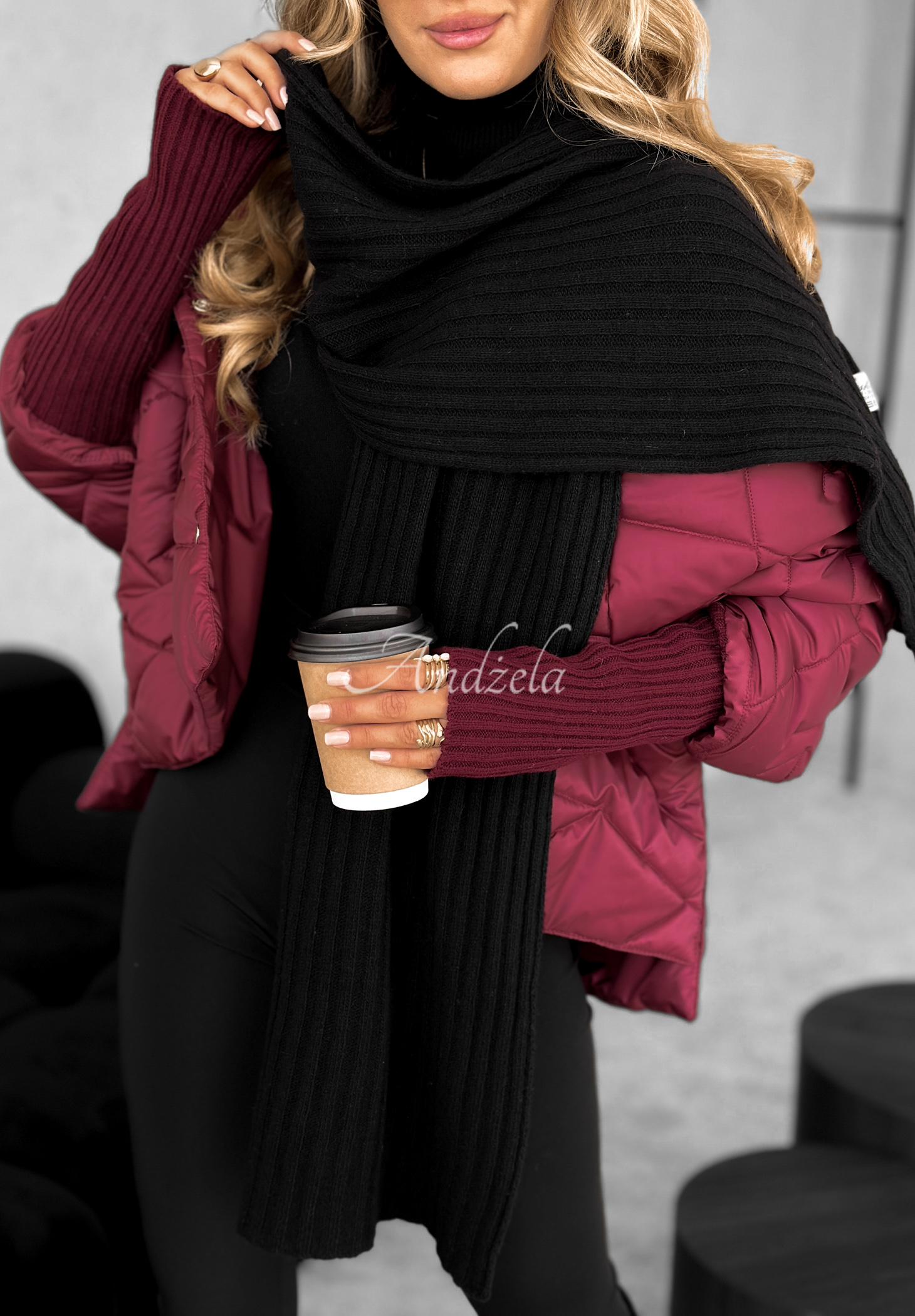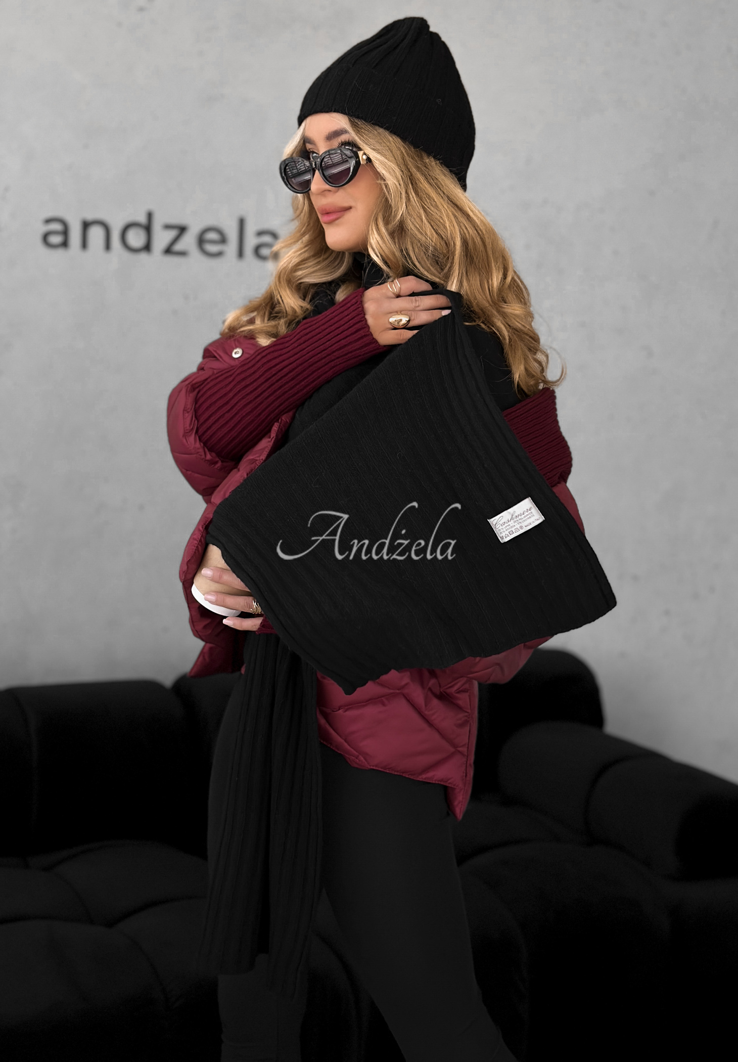 Geripptes Set aus Mütze und Schal aus Wolle und Kaschmir Snow Dates Schwarz