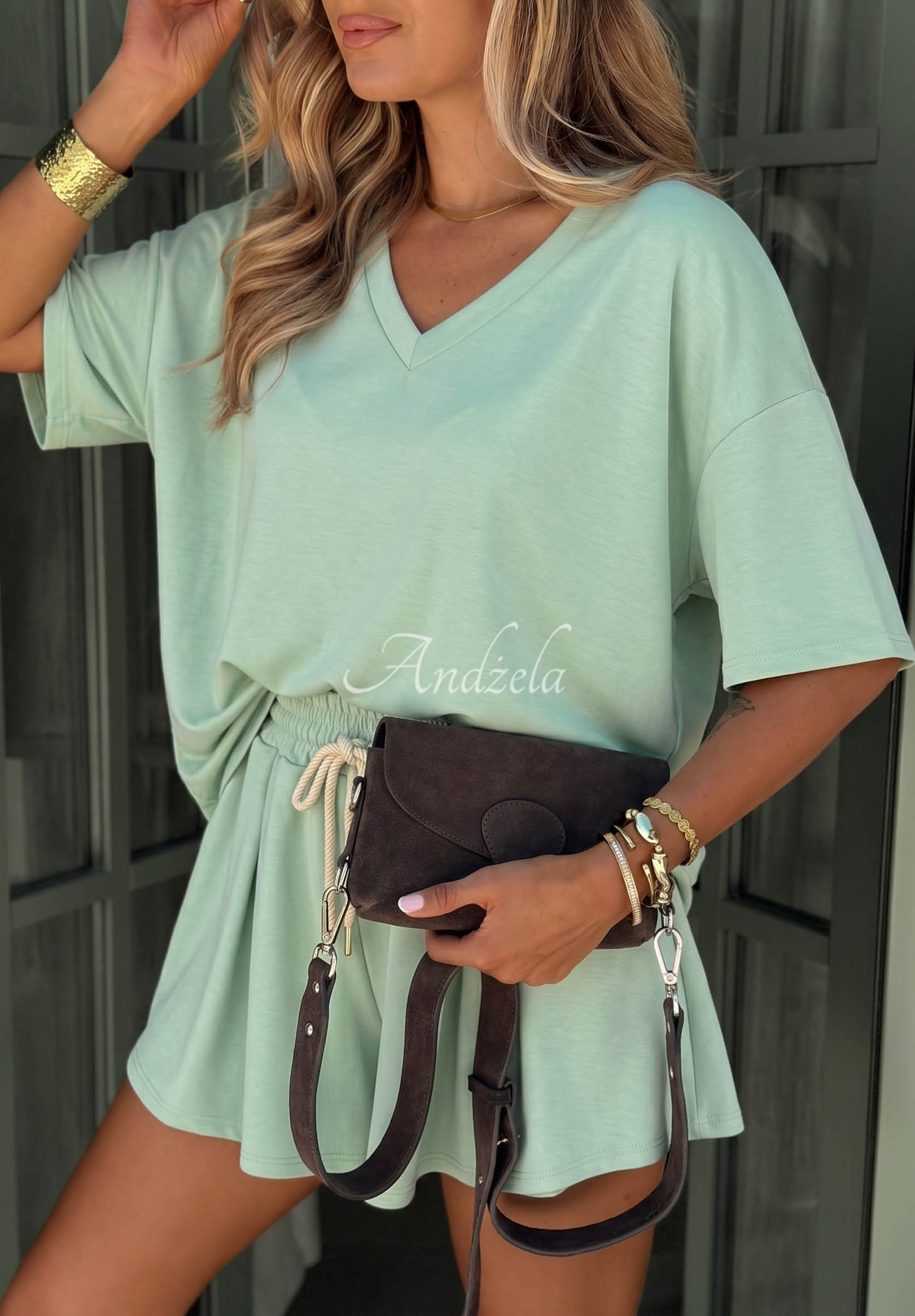 Viskose-Trainingsanzug T-Shirt und Shorts Willy Pistaziengrün