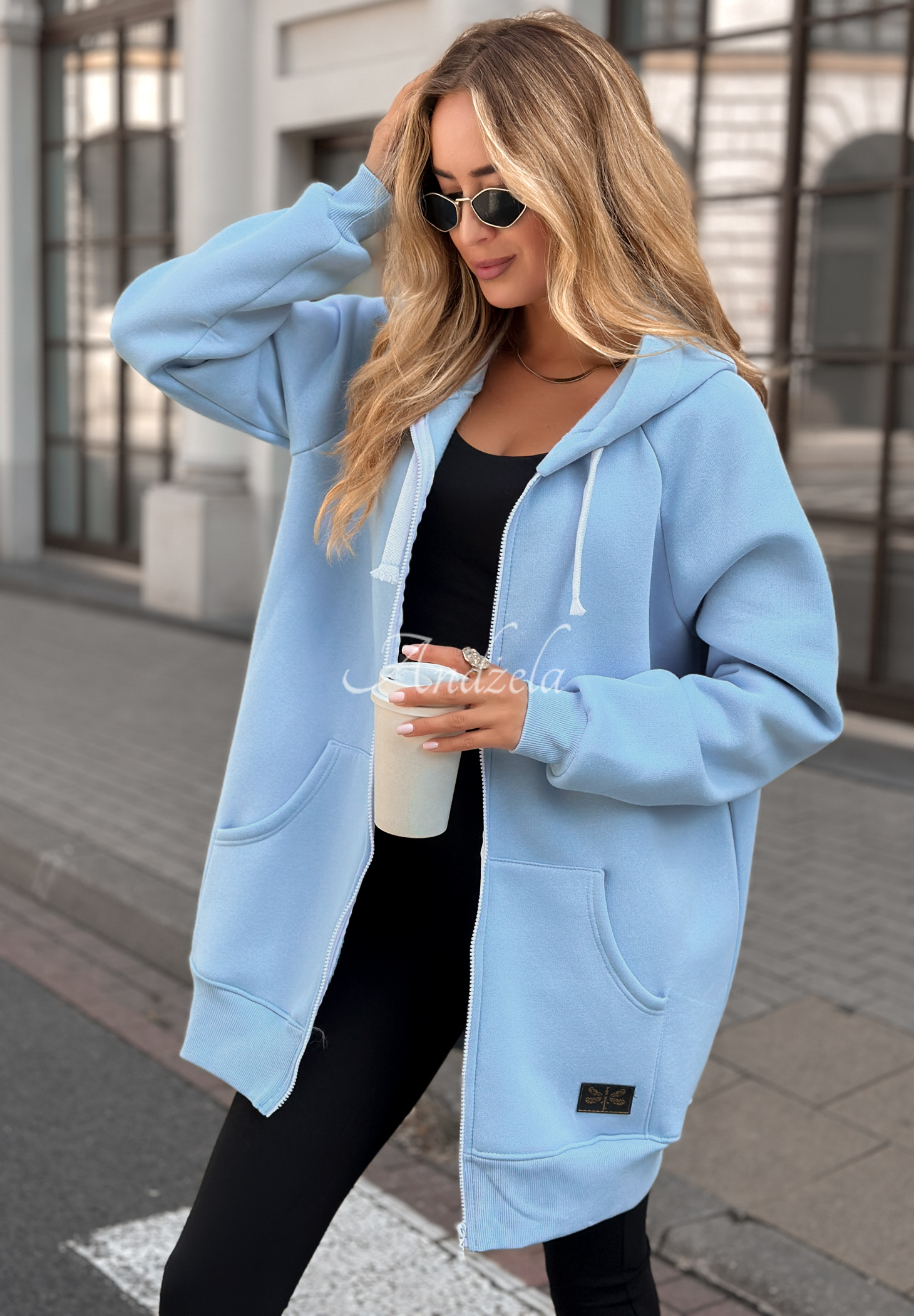 Ein overdized Sweatshirt mit weich angerauter Innenseite sollte in keinem Kleiderschrank fehlen! Es hat einen Reißverschluss, Taschen auf der Vorderseite und einen kleinen Aufnäher auf einer von ihnen. Die Ärmel und der Saum sind mit Bündchen abgeschlossen Das Ganze ist eine ideale Wahl für alle, die bequeme und zugleich modische Lösungen suchen. Das Produkt ist in zwei Farbvarianten erhältlich.