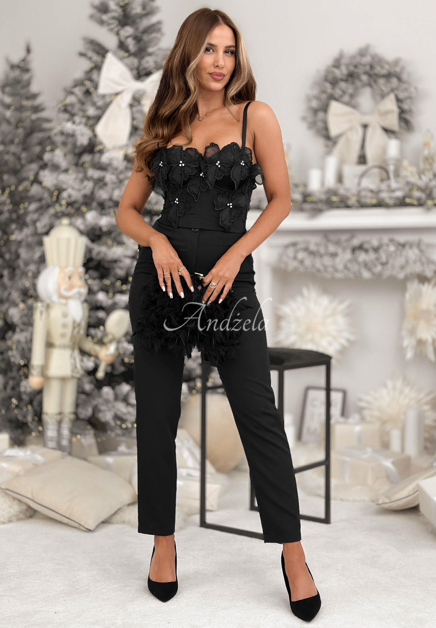 Dieses Crop-Top ist perfekt für besondere Anlässe. Es ist mit aufgenähten Zierblumen verziert und verfügt über verstellbare Träger und gepolsterte Cups. Der Verschluss im Rücken besteht aus mehreren Haken.